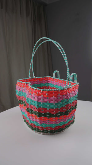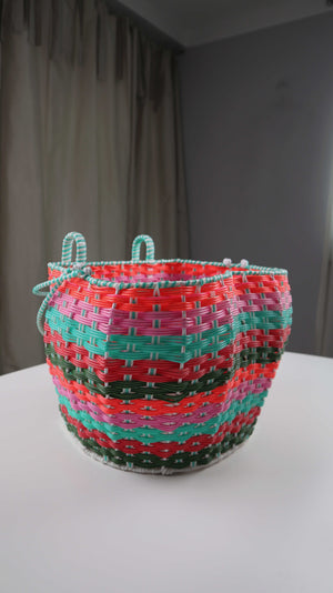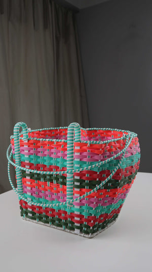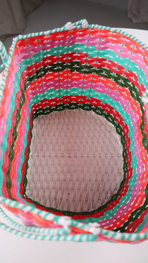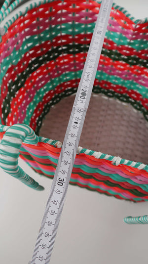 Großer, stabiler Fahrradkorb, der mit zwei Harken am Lenker befestigt werden kann. Er ist dafür geeignet nass zu werden. Plus Versand