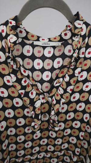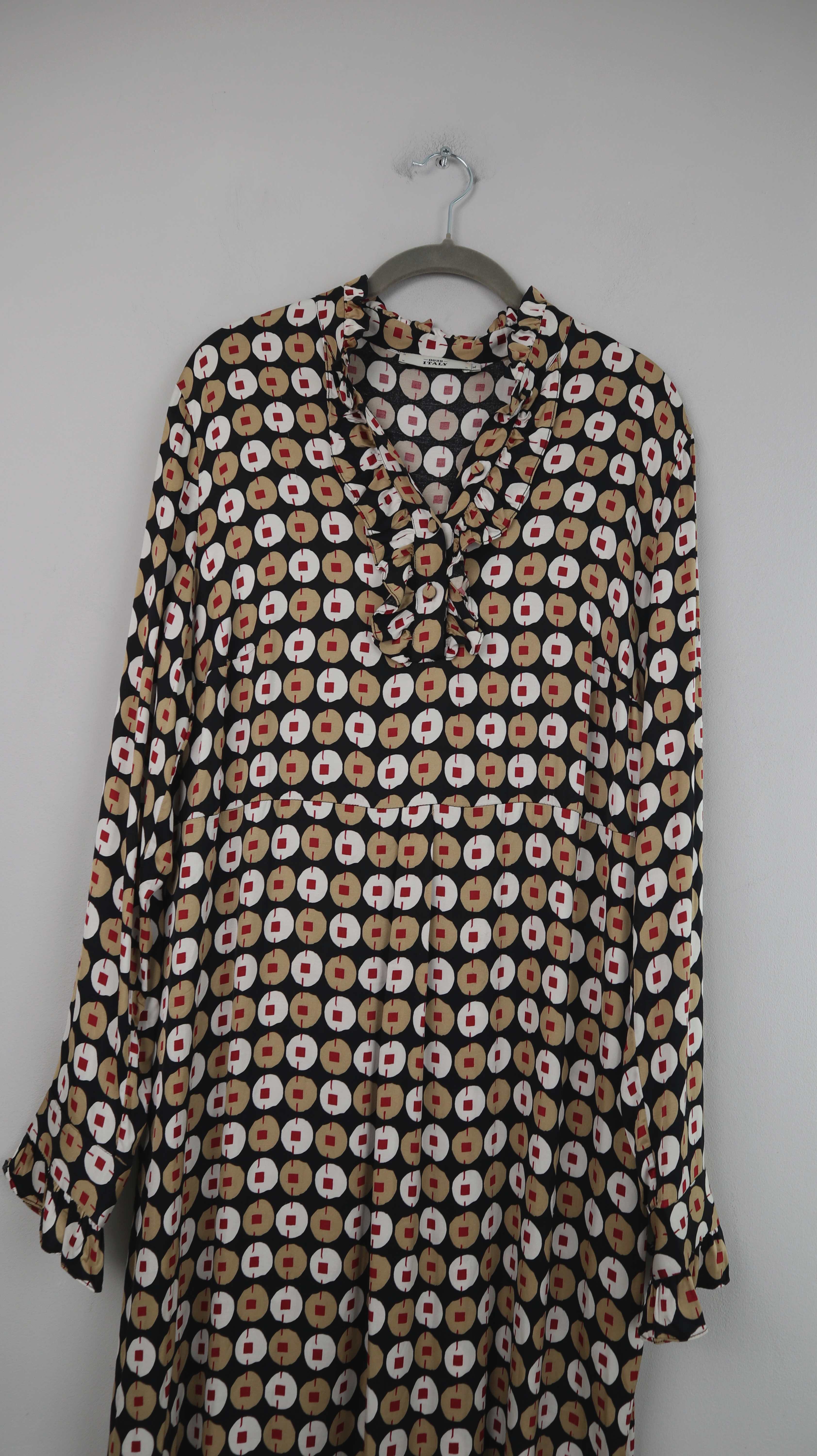 0039 Italy Kleid Midi Midikleid gemustert XL braun schwarz rot