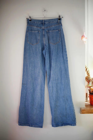 24colors Hose Jeans flared denim blau 38 M long Schlaghose wide leg