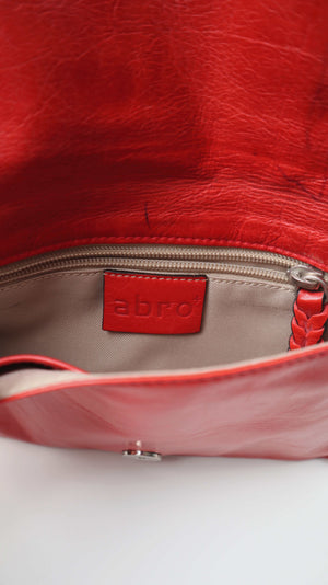 Kleine rote Ledertasche von Abro. Innen ist nochmal ein kleines Fach. Sie wird in der Hand getragen. Plus Versand