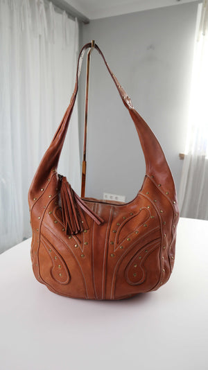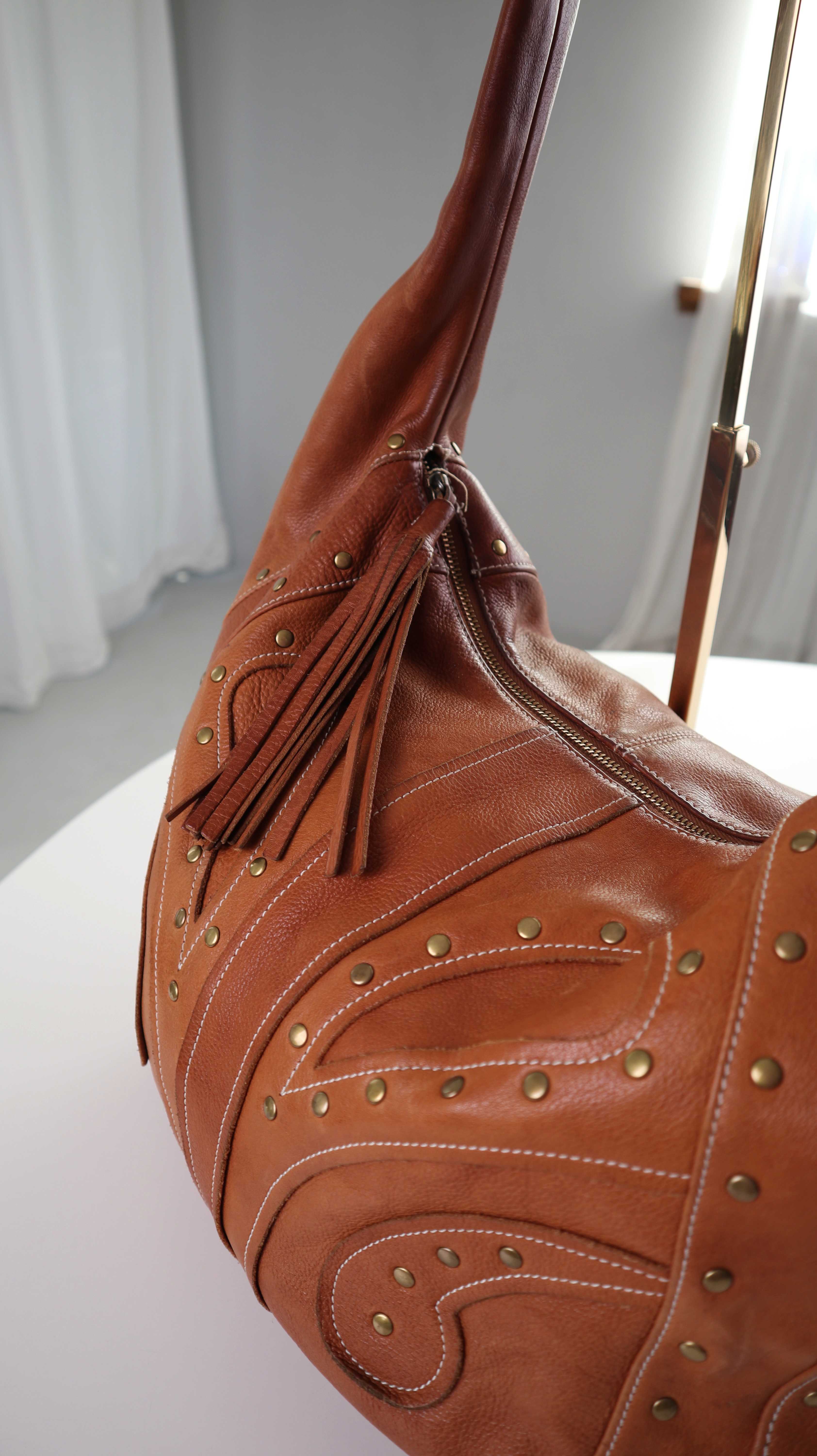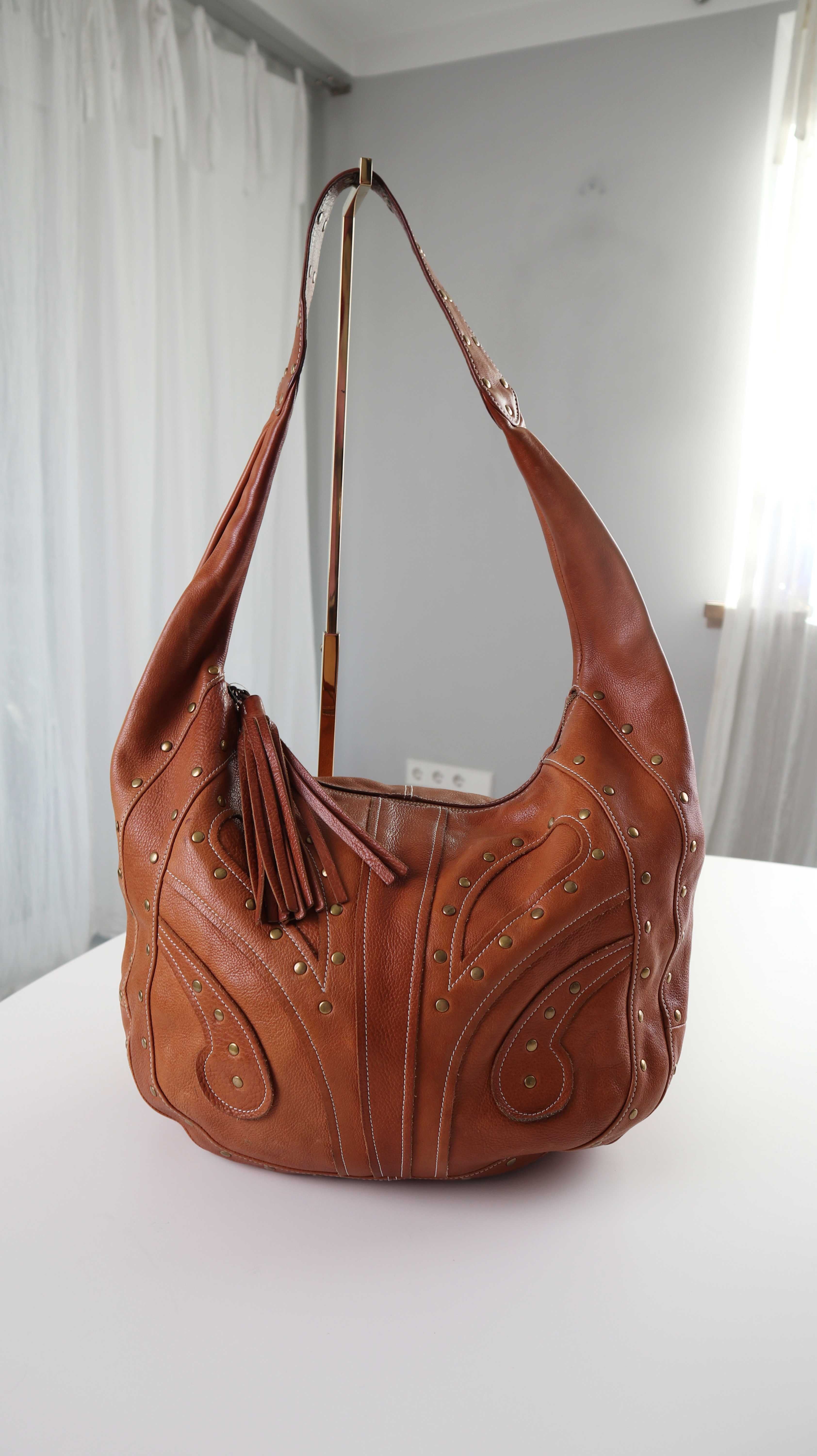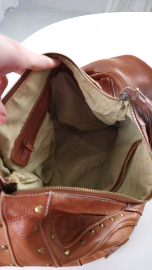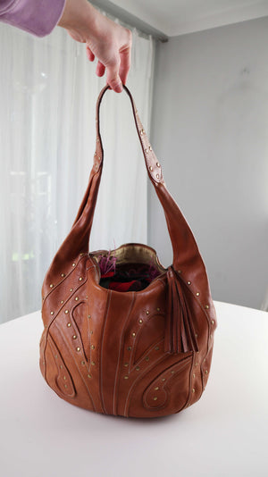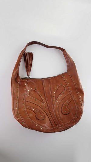 Abro Tasche Handtasche Schultertasche Ledertasche Braun Nieten Gold