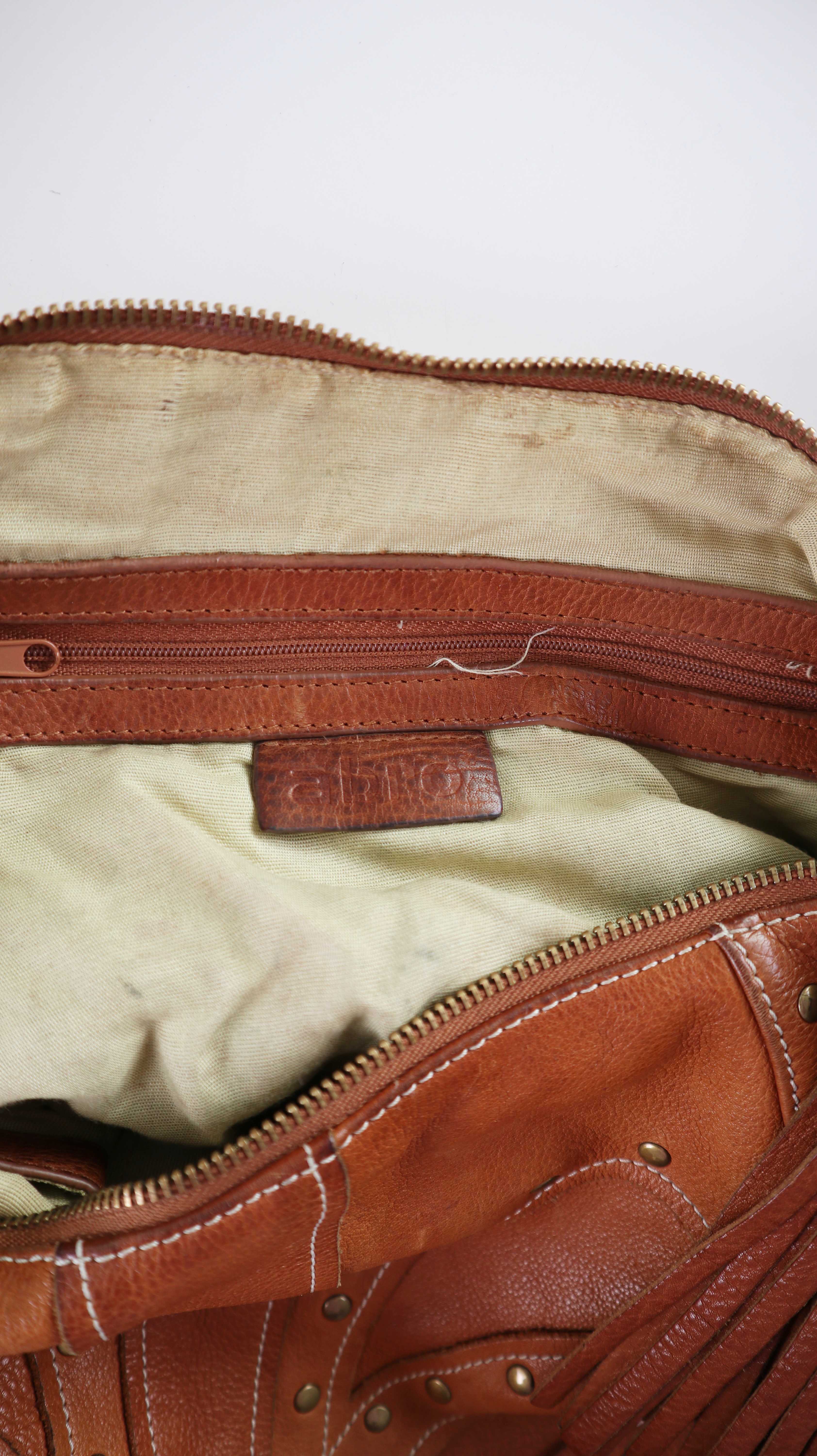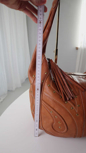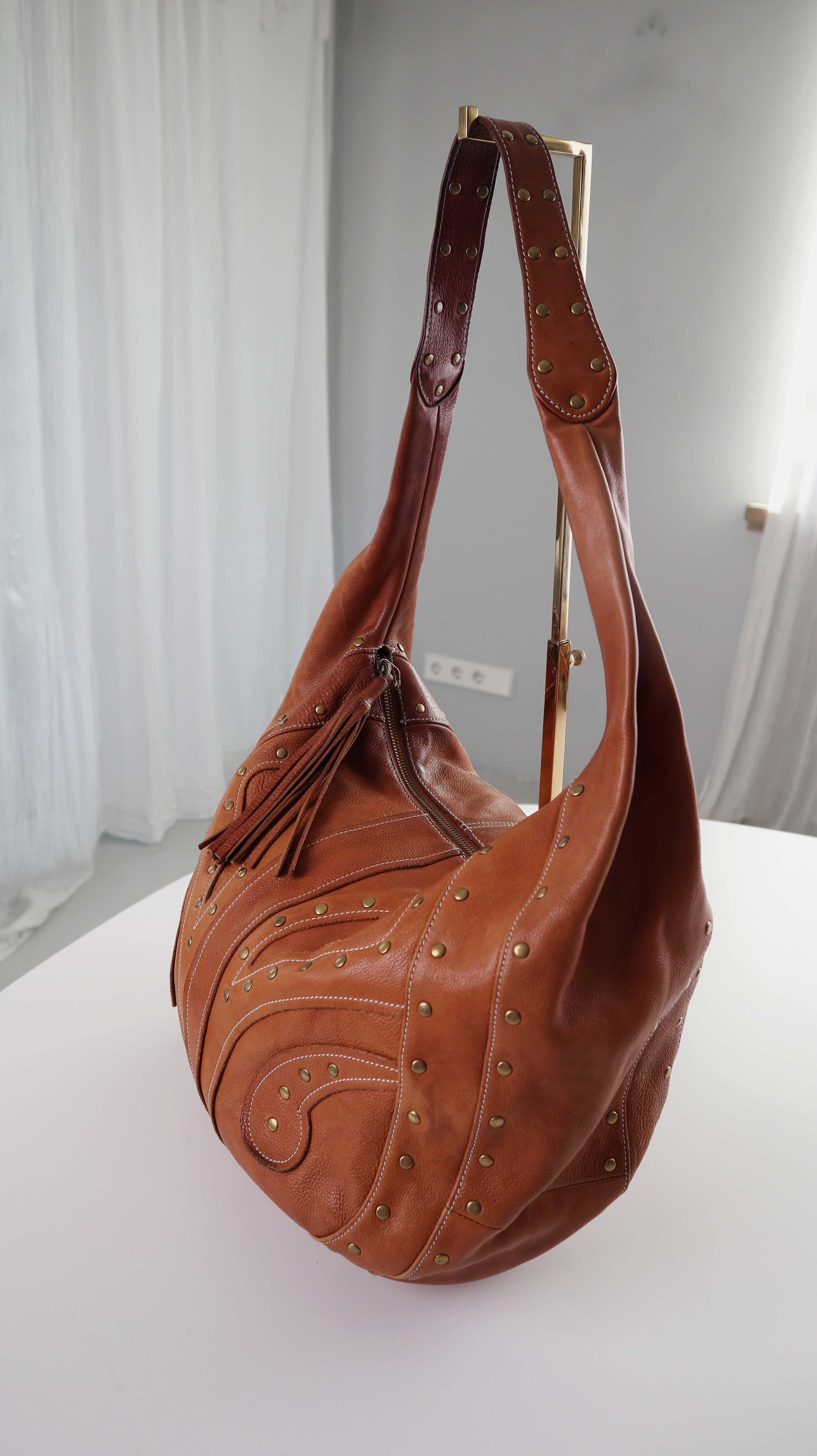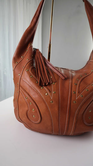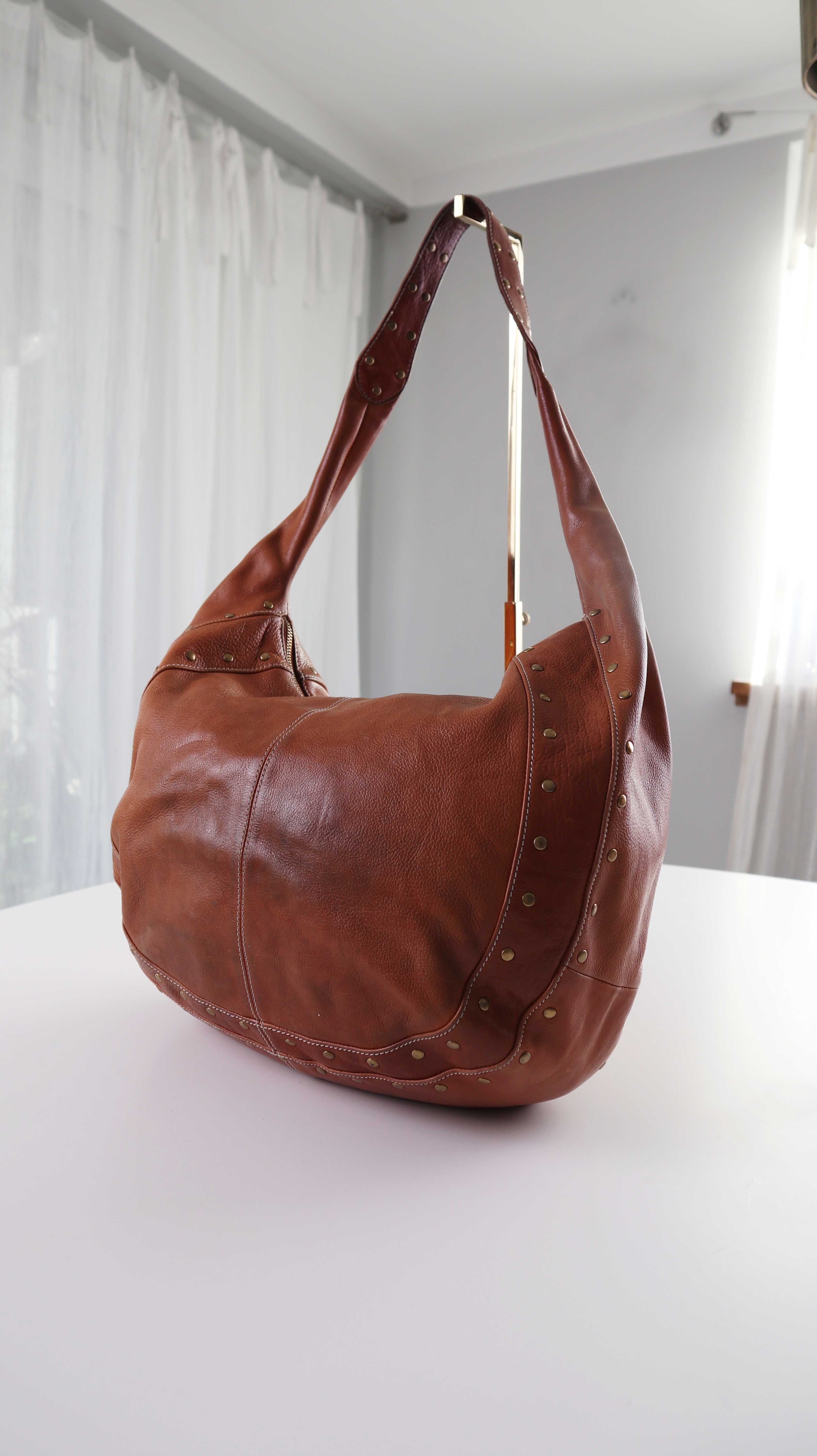 Abro Tasche Handtasche Schultertasche Ledertasche Braun Nieten Gold
