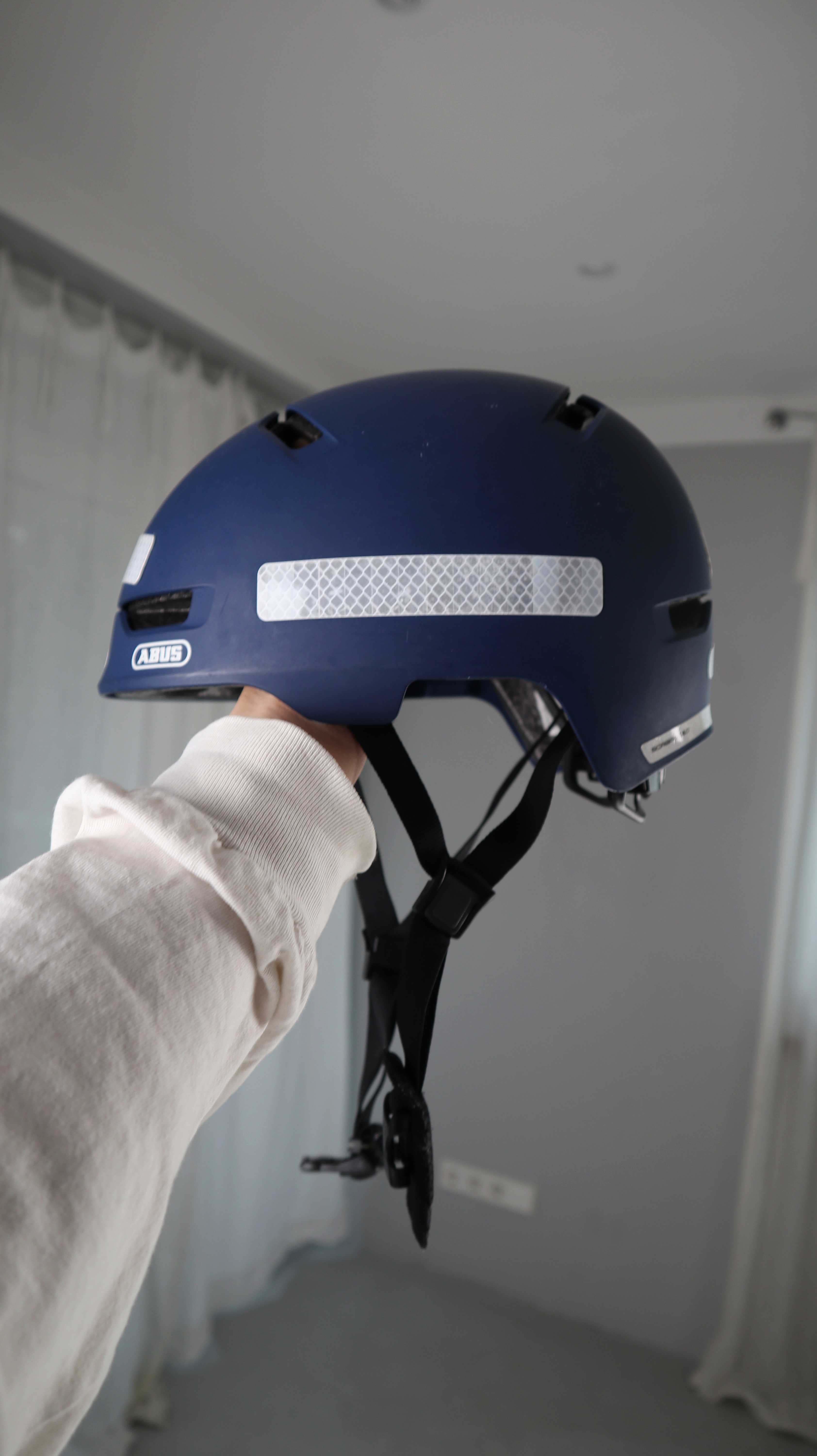 Blauer Helm von Abus in 54-58 mit Reflektoren. Plus Versand