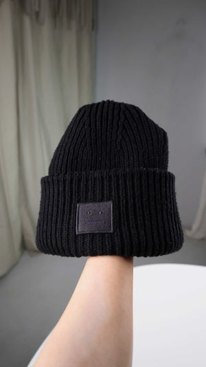 Acne Studios Mütze Beanie schwarz basic Wolle Wollmütze Smiley