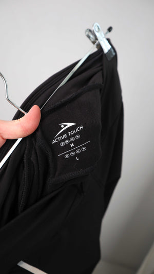 Schwarze Trainingshose in M von Active Touch. 40 cm Bundweite, 24 cm Schritthöhe und 67 cm Innenbeinlänge. Plus Versand