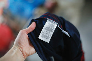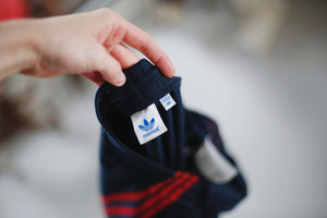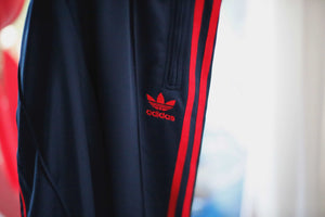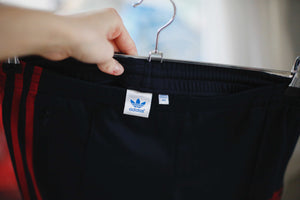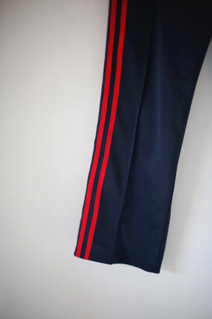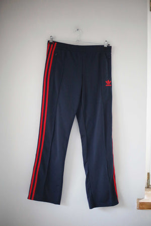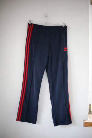 Dunkelblaue Trainingshose von Adidas in 40 L. 41 cm Bundweite, 24 cm Schritthöhe und 76 cm Innenbeinlänge. Plus Versand