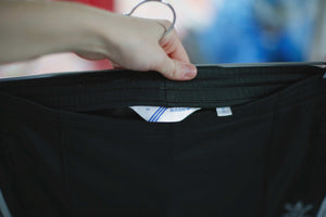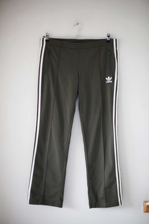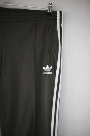 Grüne Stoffhose von Adidas in einer 40 L. 47 cm Bundweite, 24 cm Schritthöhe und 76 cm Innenbeinlänge. Plus Versand
