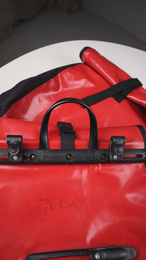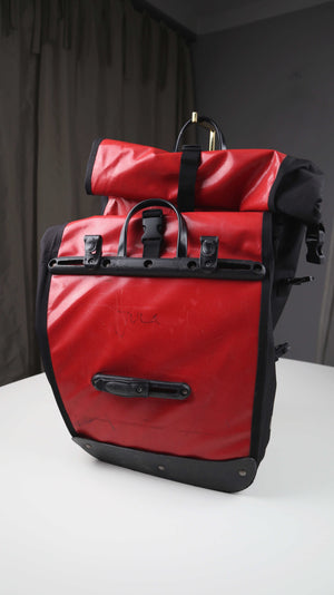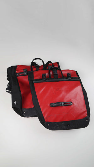 Alex Satteltaschen Fahrradtaschen Set rot schwarz Planentaschen Gepäckträgertaschen