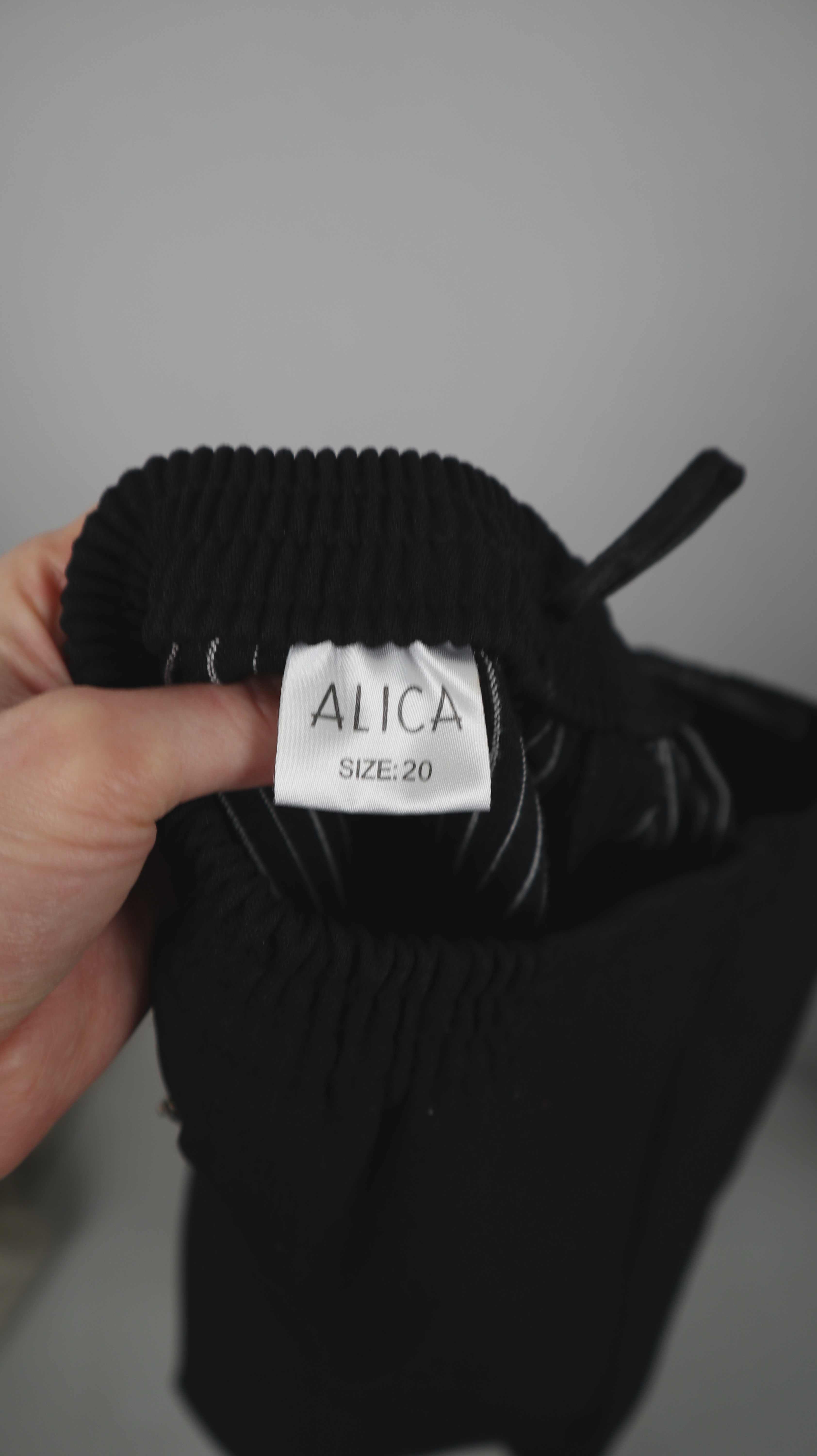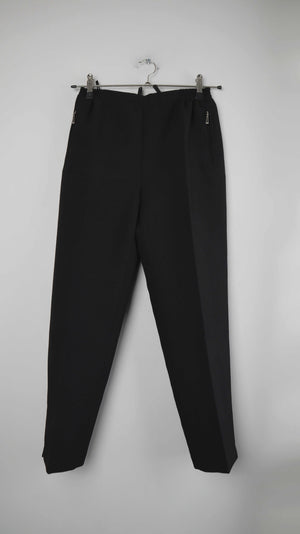 Schwarze Stoffhose von Alicia in 40 L. 36 cm Bundweite (Gummizug), 32 cm Schritthöhe und 64 cm Innenbeinlänge. Plus Versand