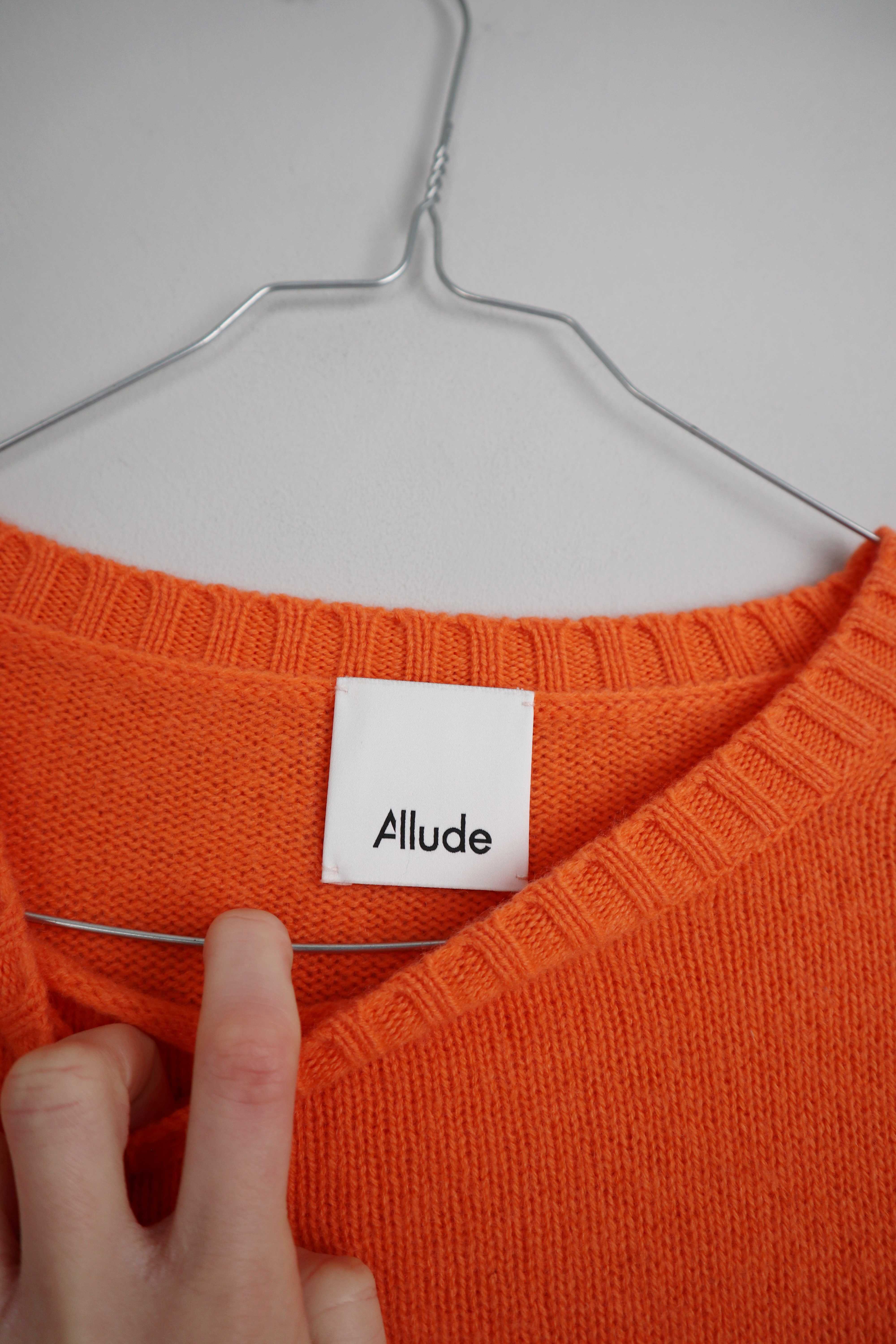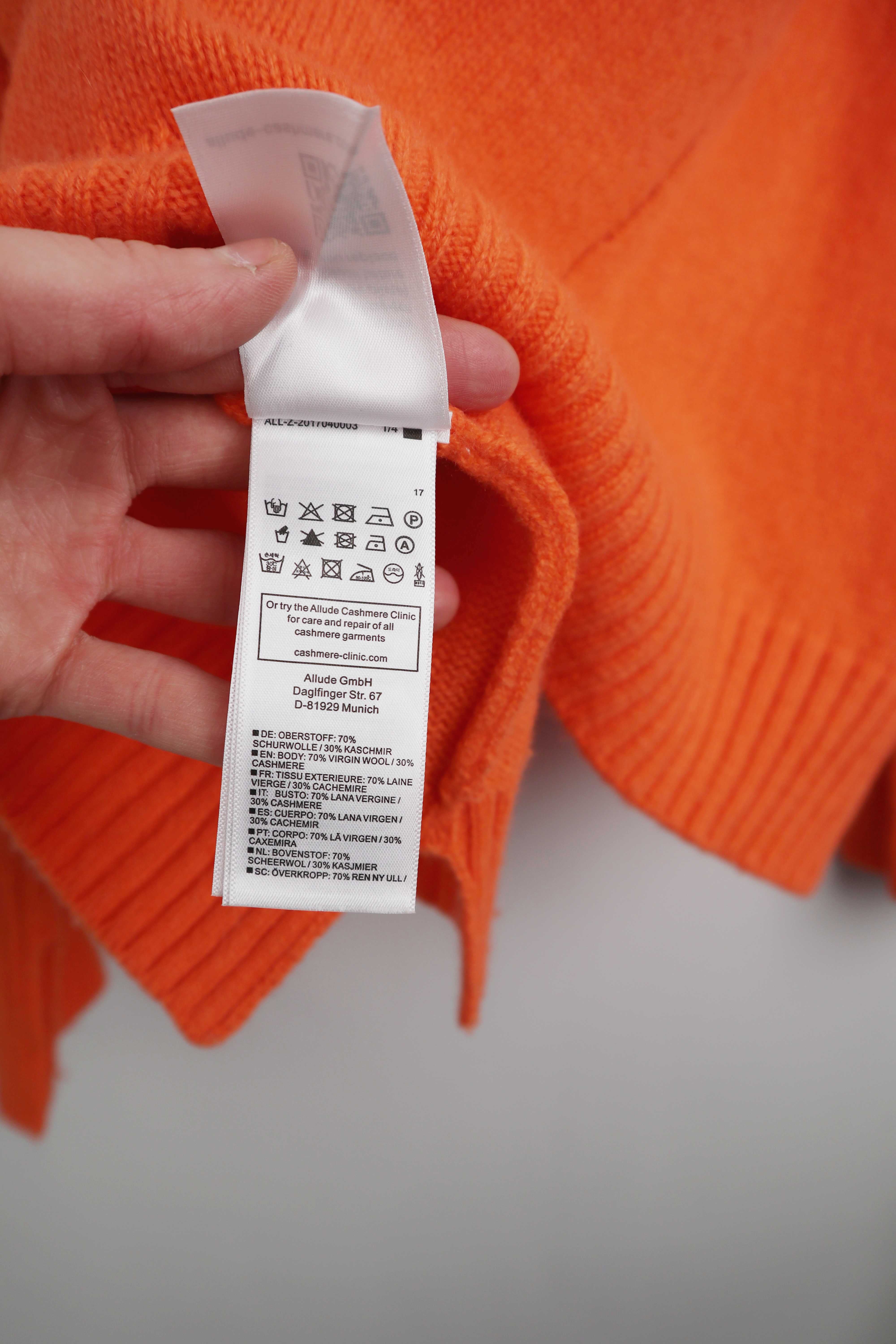 Orangener Pullover aus Wolle und Kaschmir von Allude. Sehr guter Zustand, er passt einer M bis L. 63 cm Achselweite und 58 cm Länge. Plus Versand