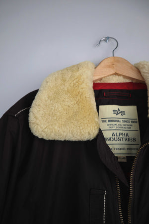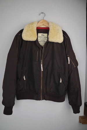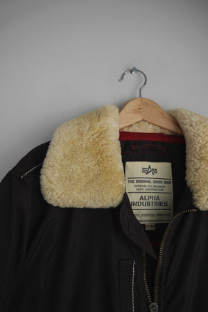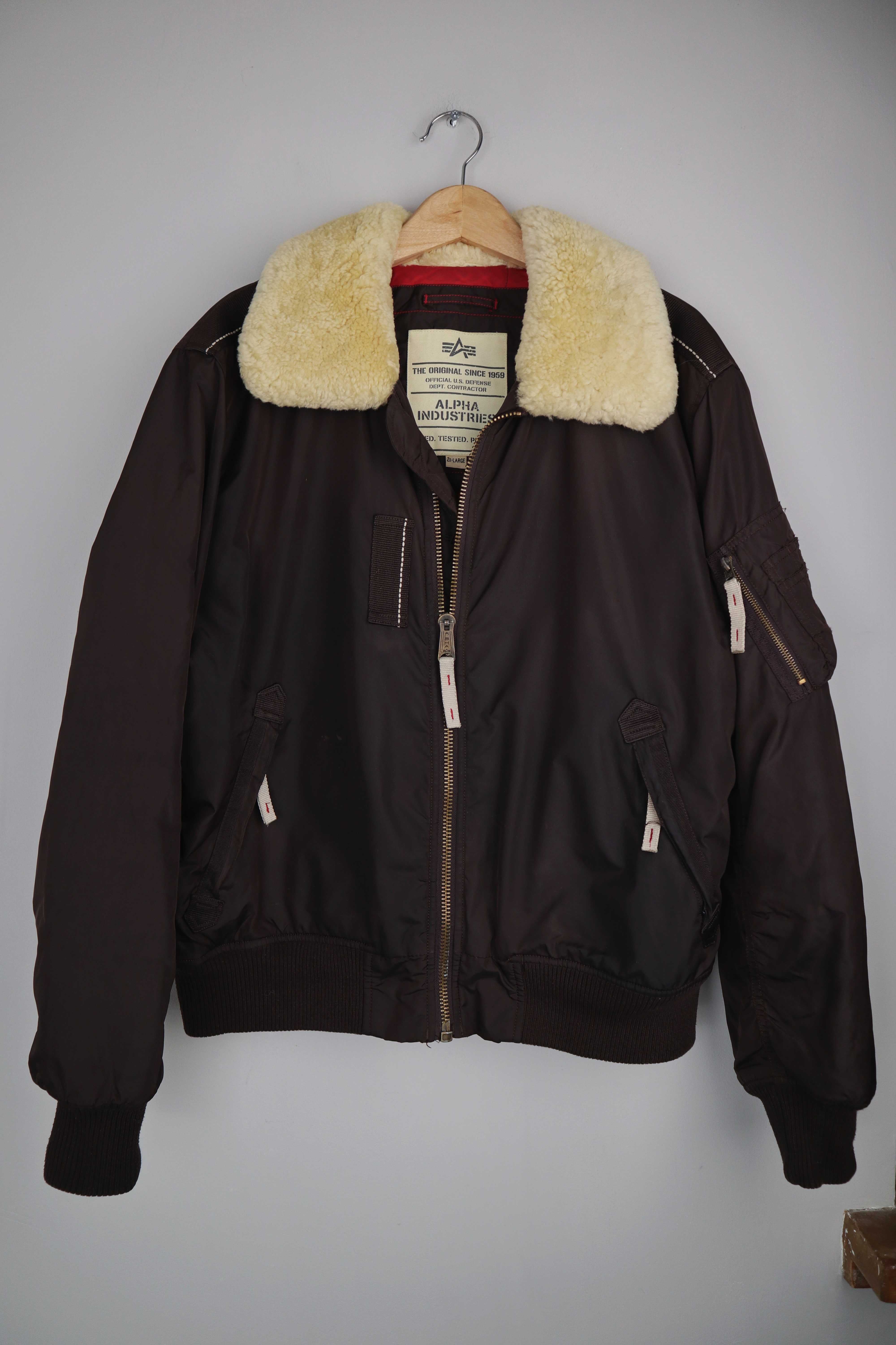 Alpha Industries Jacke Braun XXL Braun Fliegerjacke Lammfell Bomberjacke