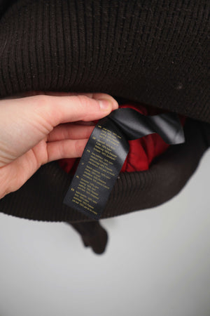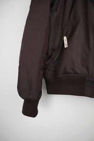 Braune Bomberjacke von Alpha Industries in XXL. Sie ist braun und hat einen Kragen aus Lammfell. Vorne ein Zipper und Taschen. Sehr guter Zustand. Der rote Batch fehlt. 60 cm Achselweite und 70 cm Länge. Plus Versand