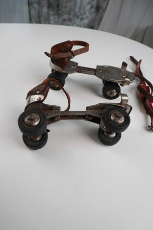 Alte größenverstellbare Rollschuhe mit Riemen. Plus Versand