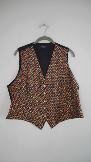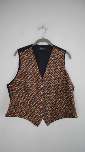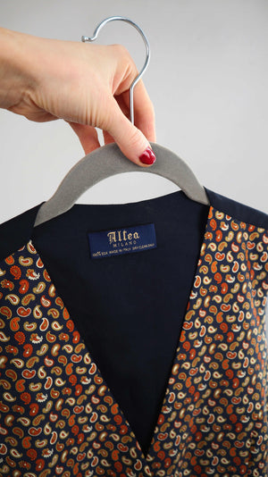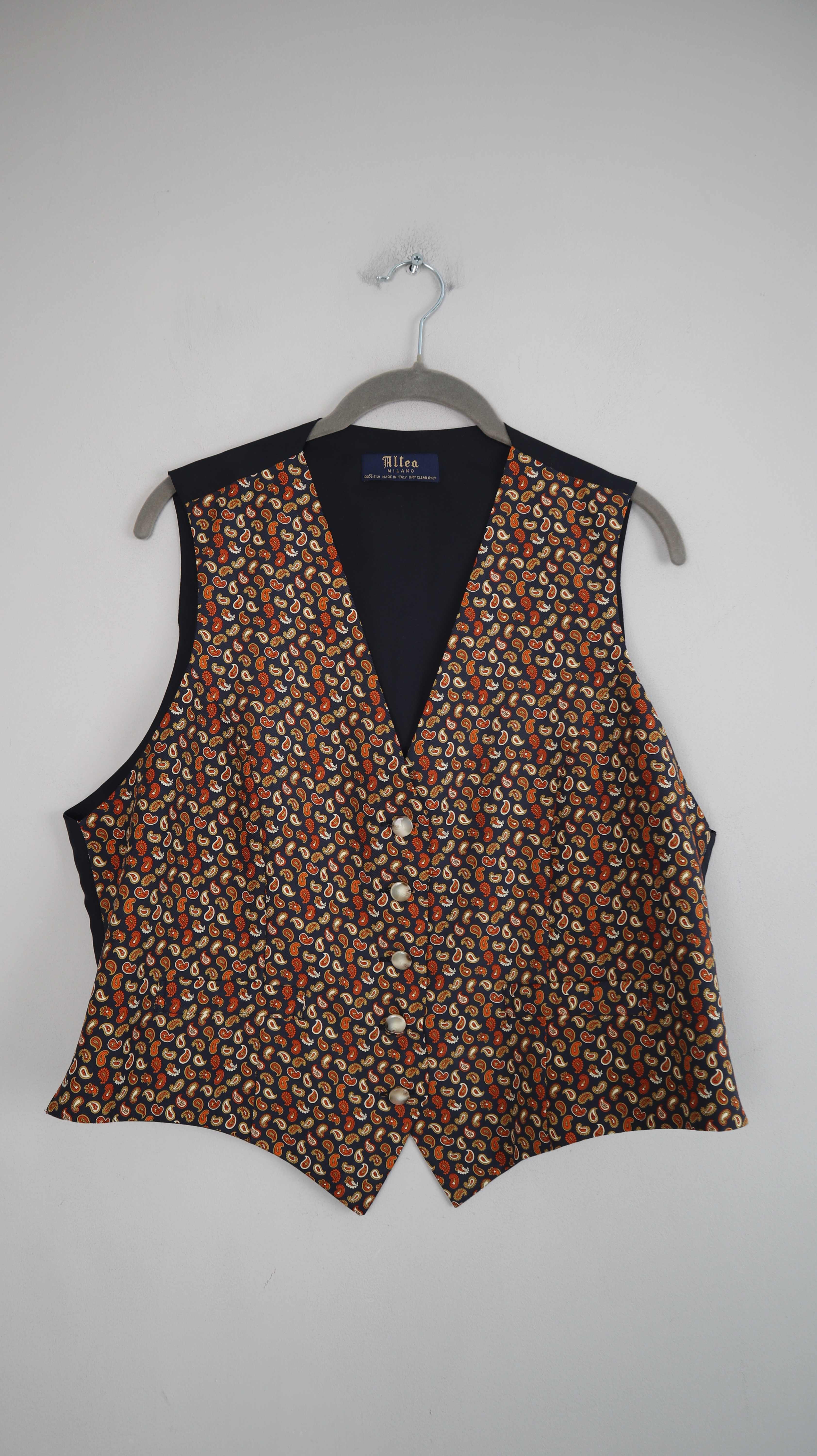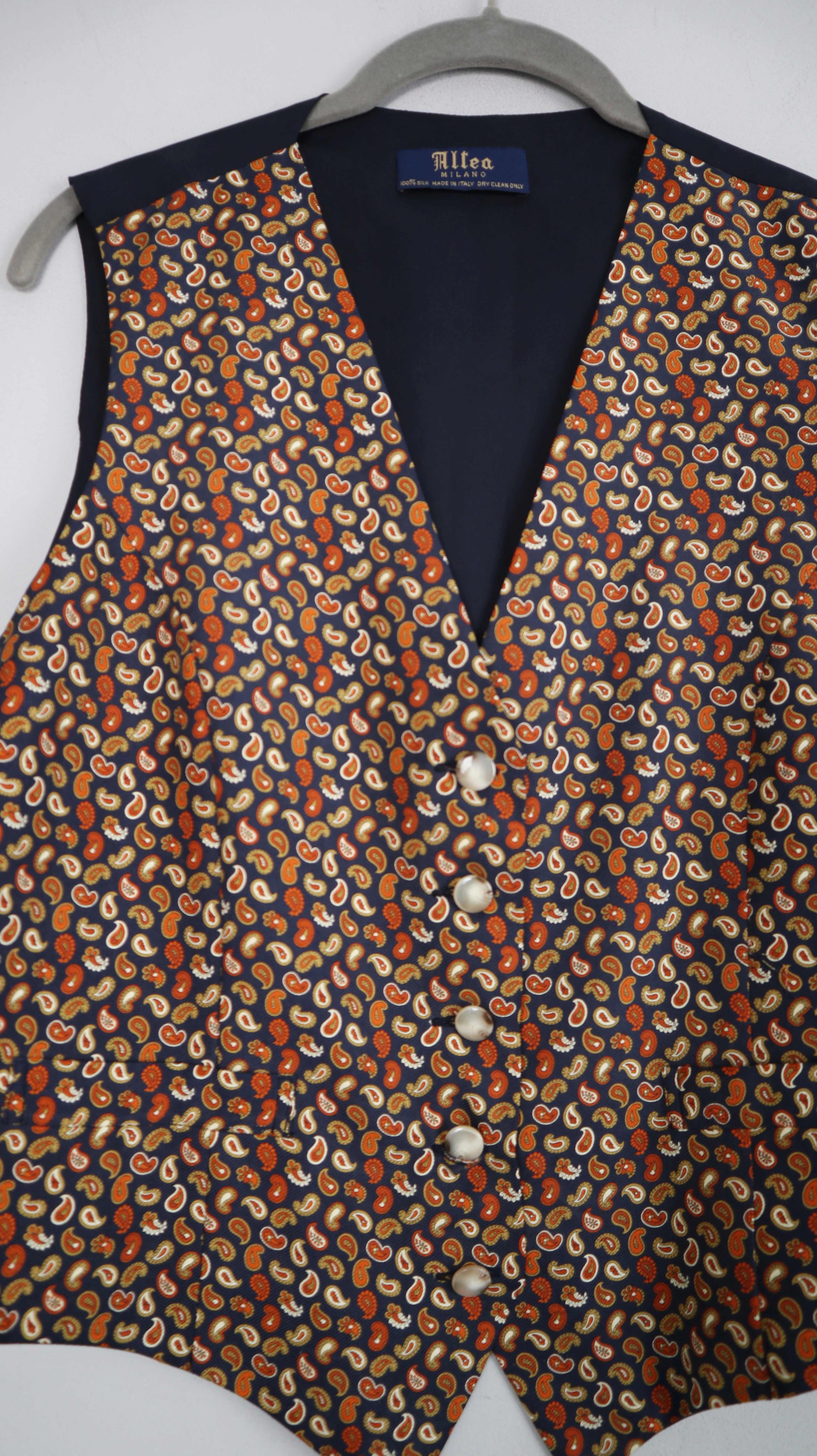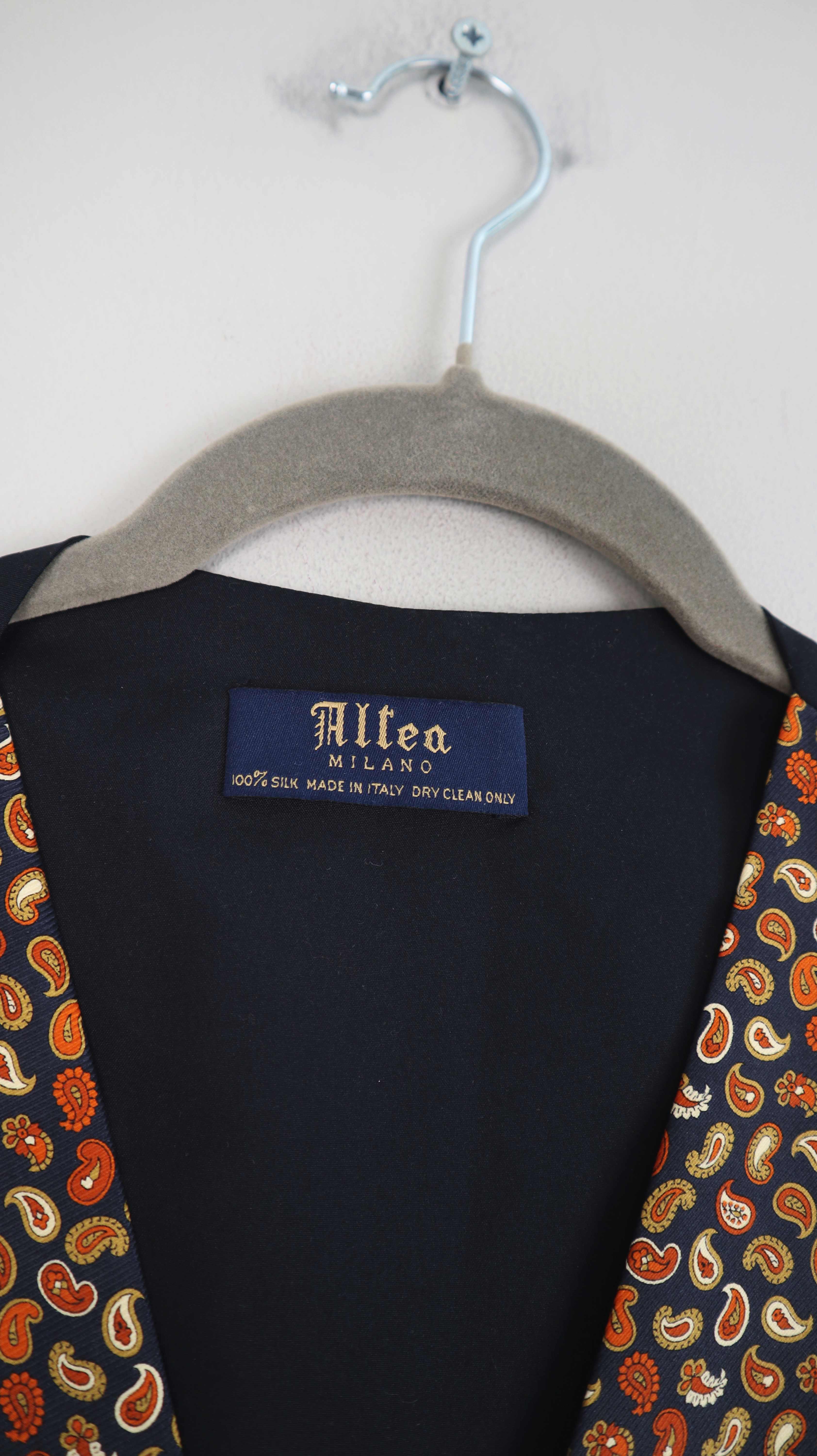 Altea Milano Weste Seidenweste Paisley blau gelb Seide XL