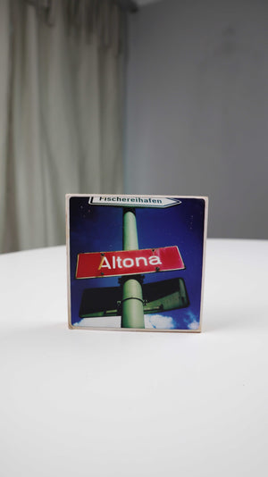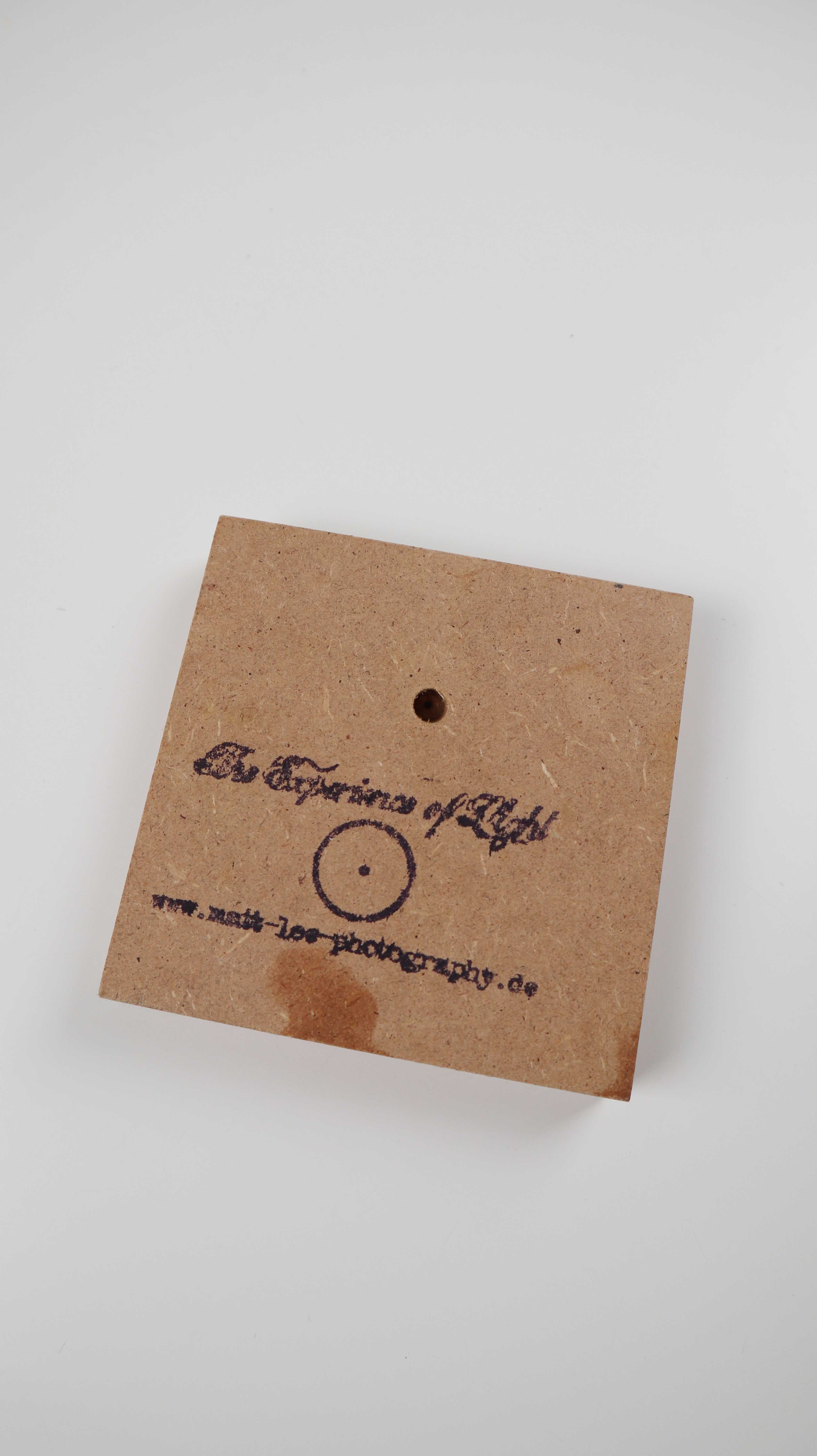 Kleines Bild auf einer Holzplatte. Plus Versand
