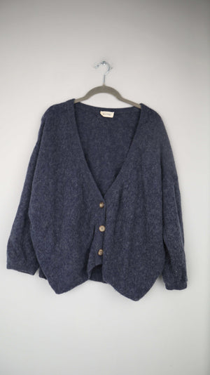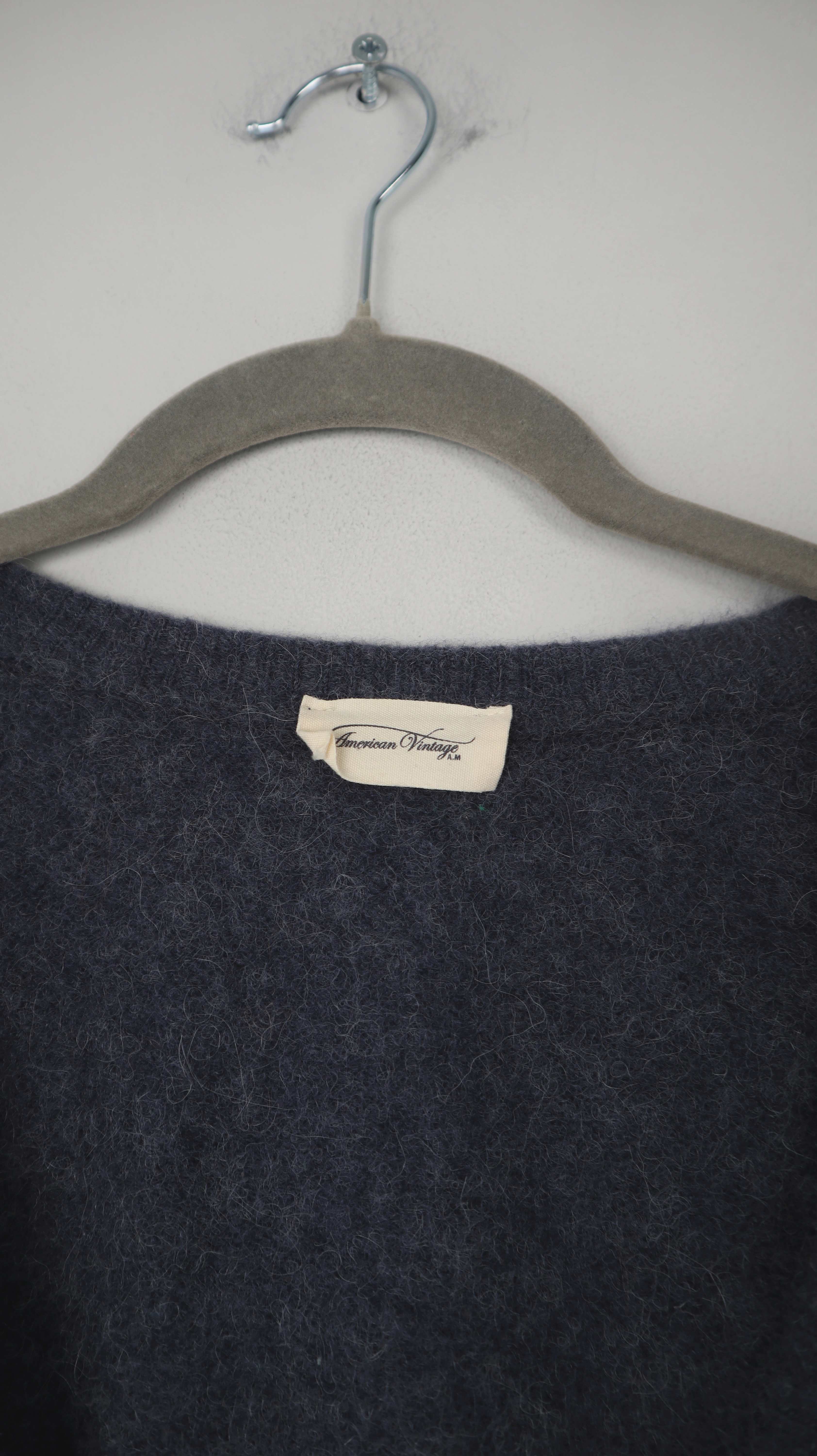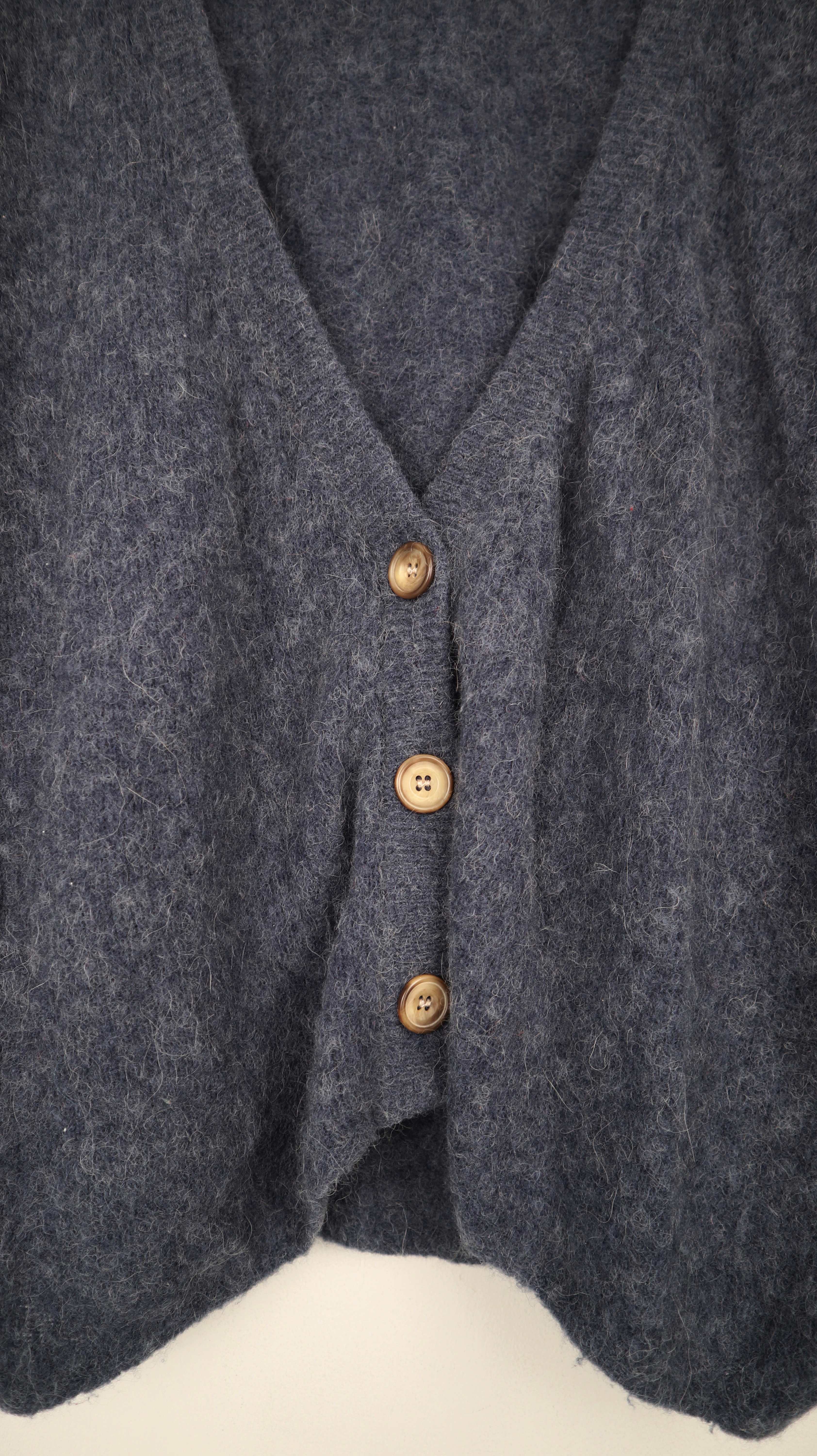 American Vintage Strickjacke Cardigan Blau dunkelblau Alpaka Wolle Wollstrickjacke