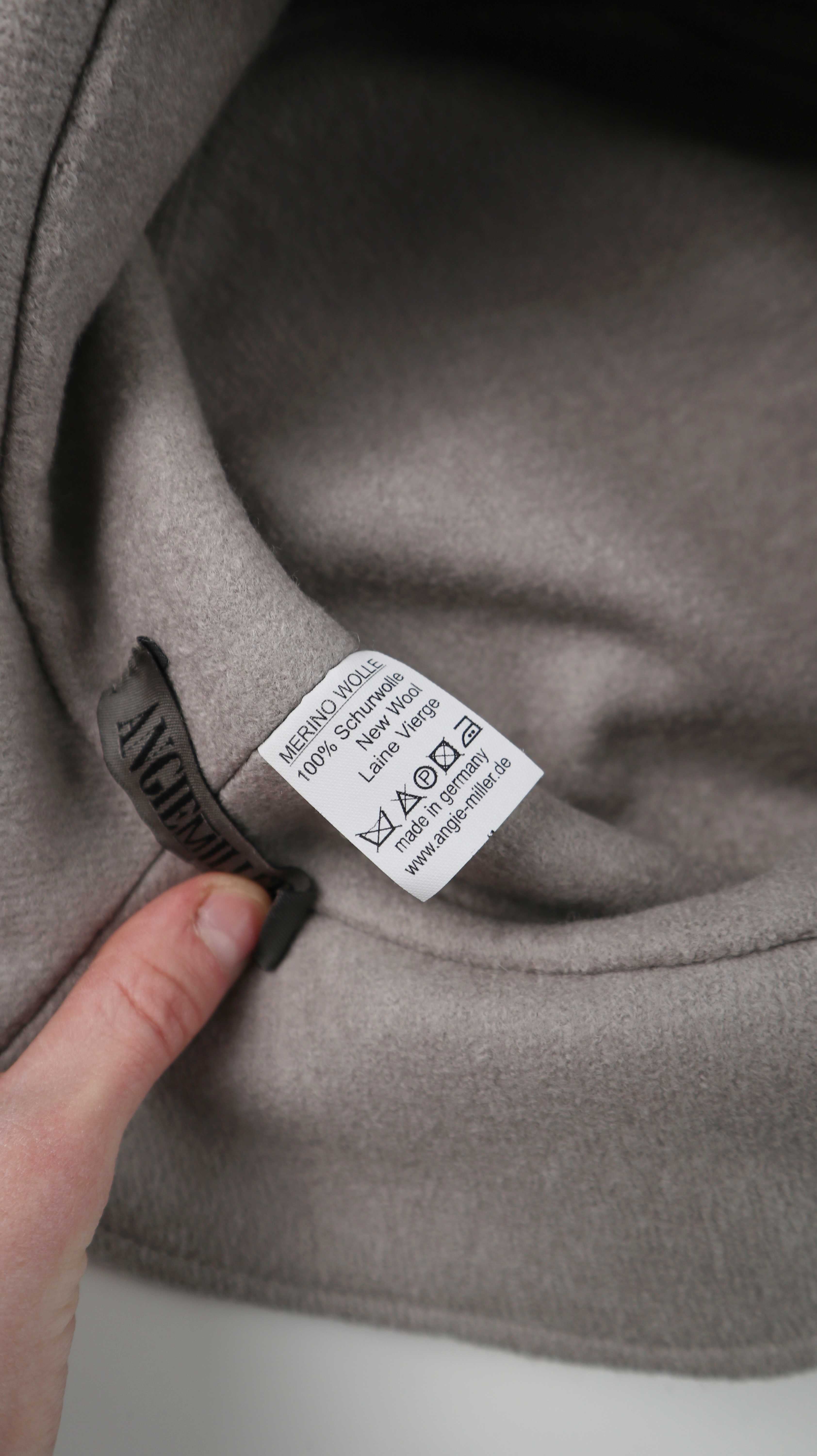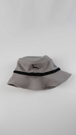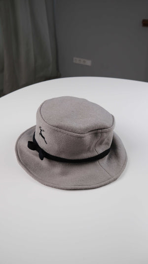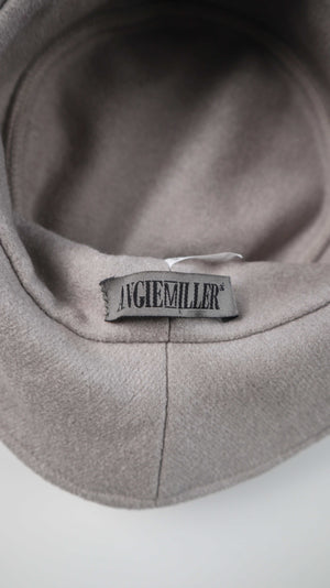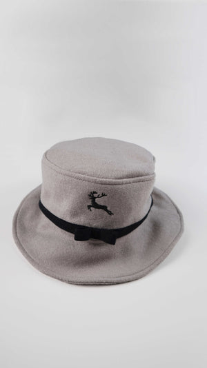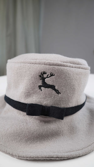 Angie Miller Hut Mütze Wolle Grau rund Hirsch bestickt
