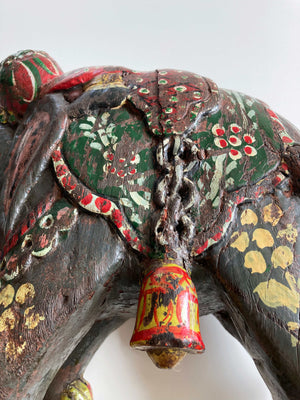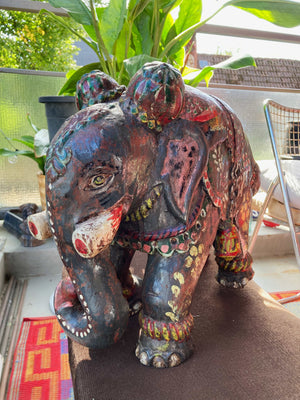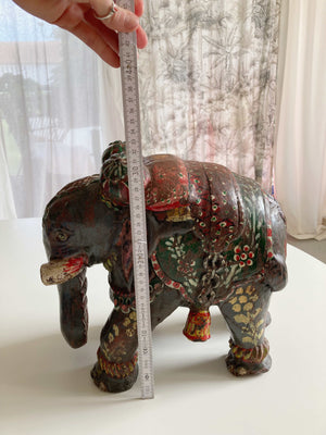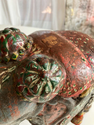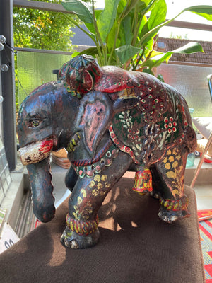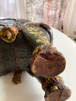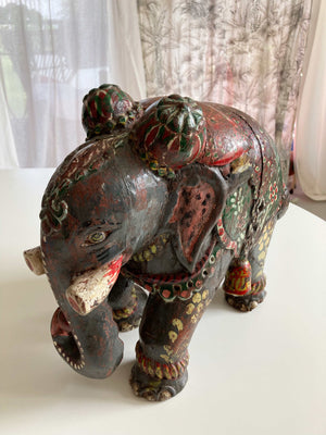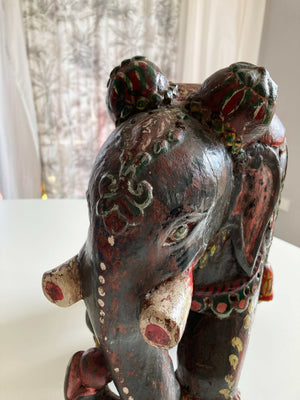 Antike Elefantenfigur Holzfigur Elefant bemalt Statue