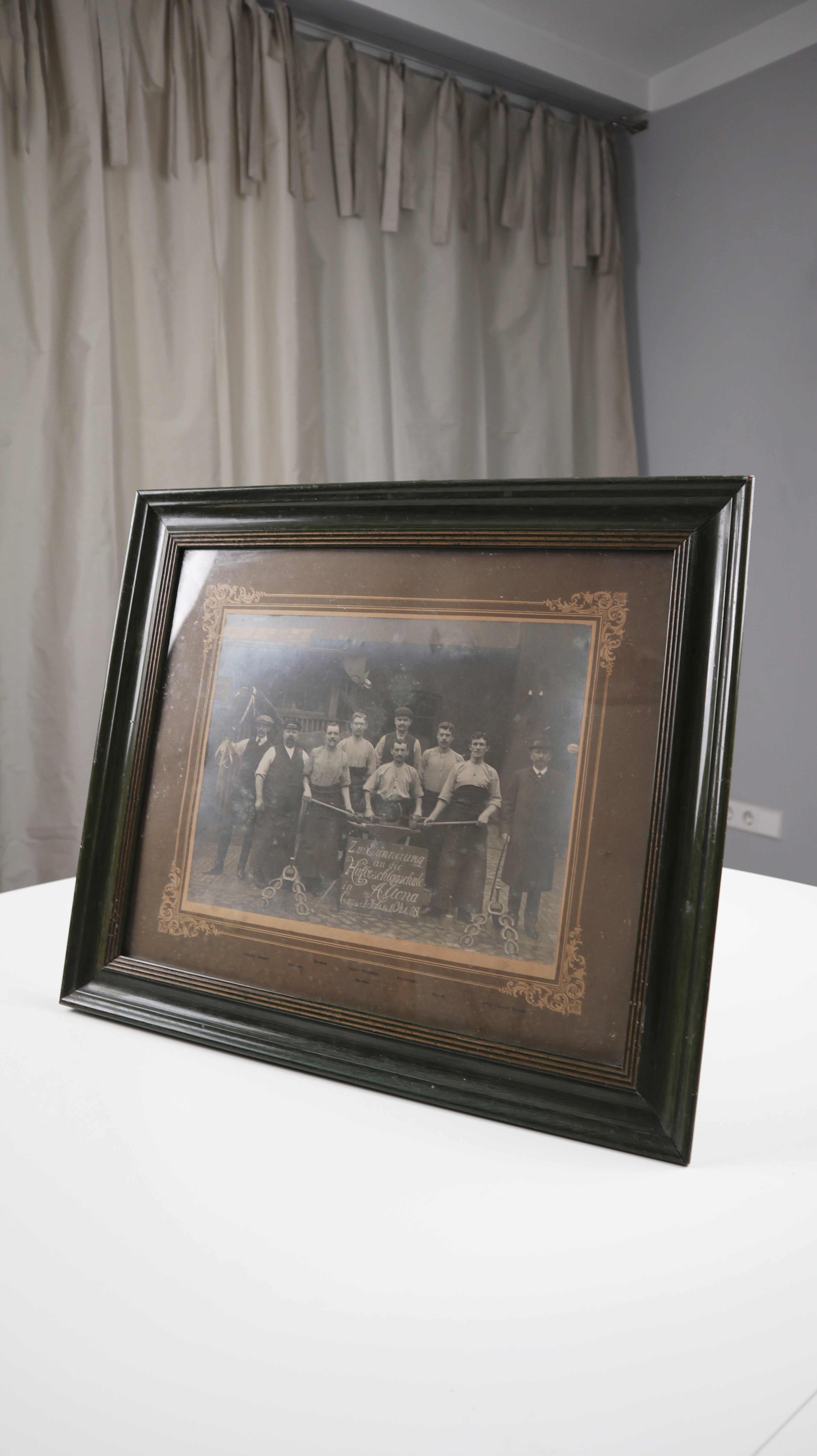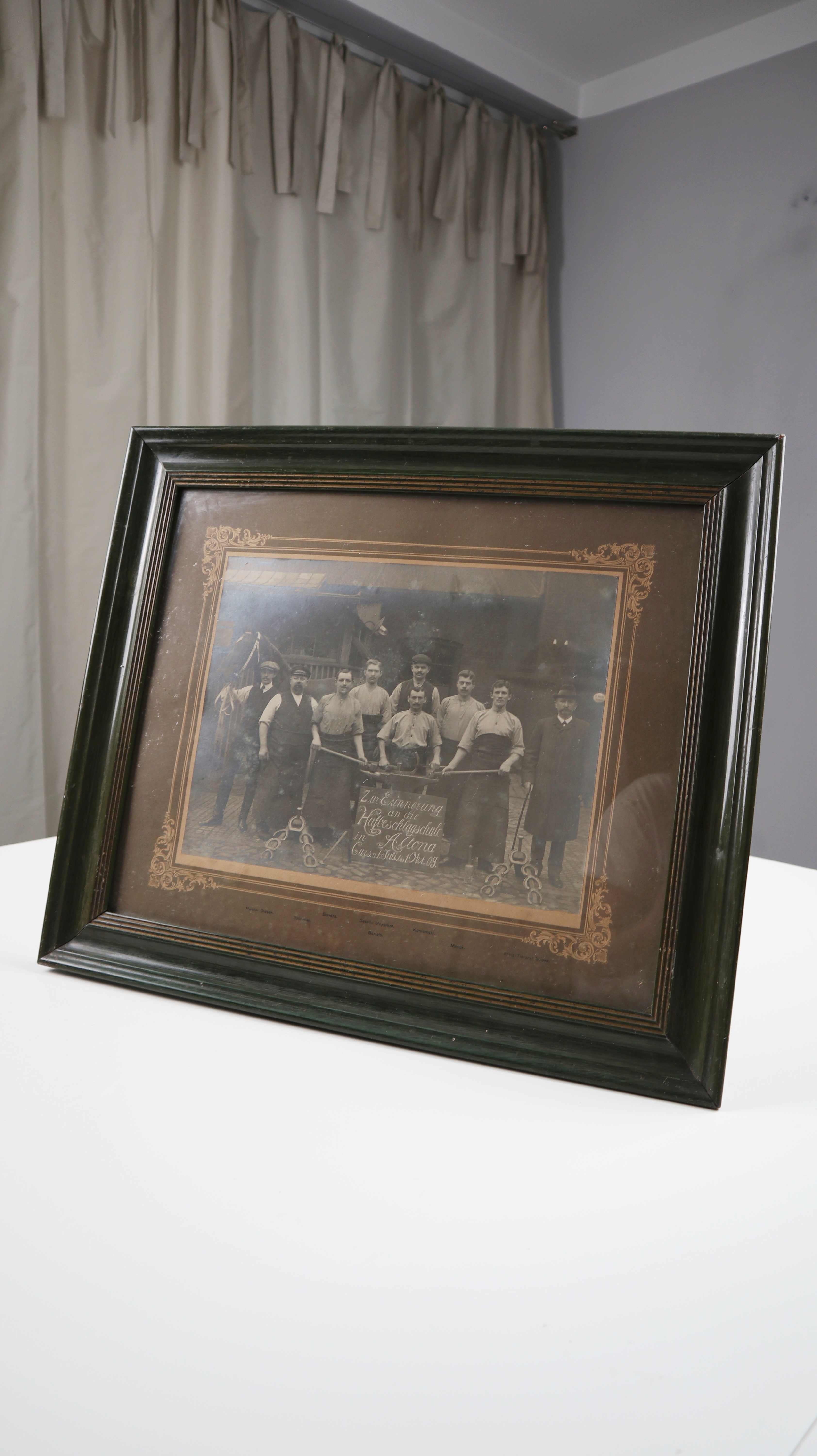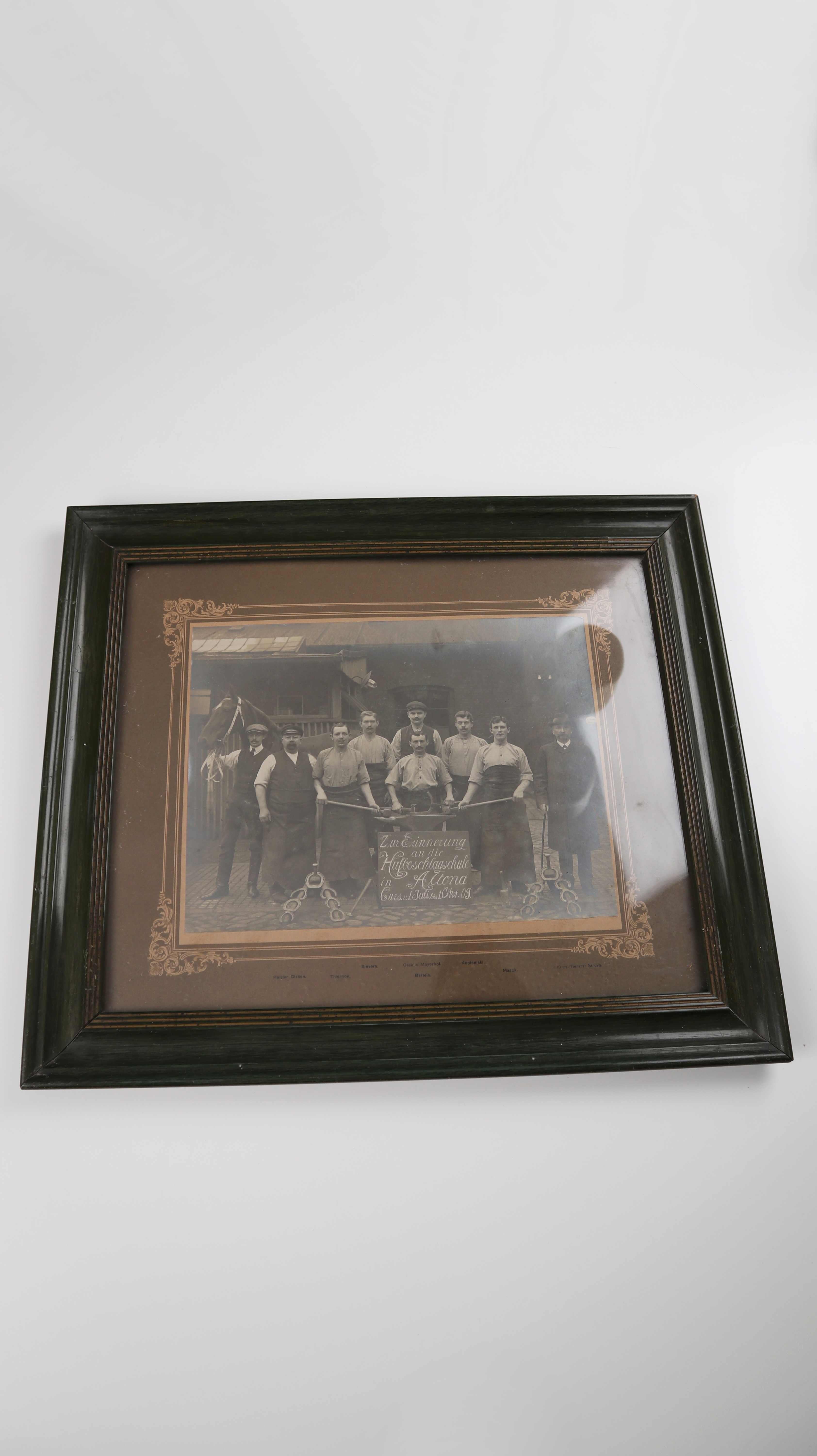 Antikes Bild Fotografie gerahmt grün Hufschmied Altona