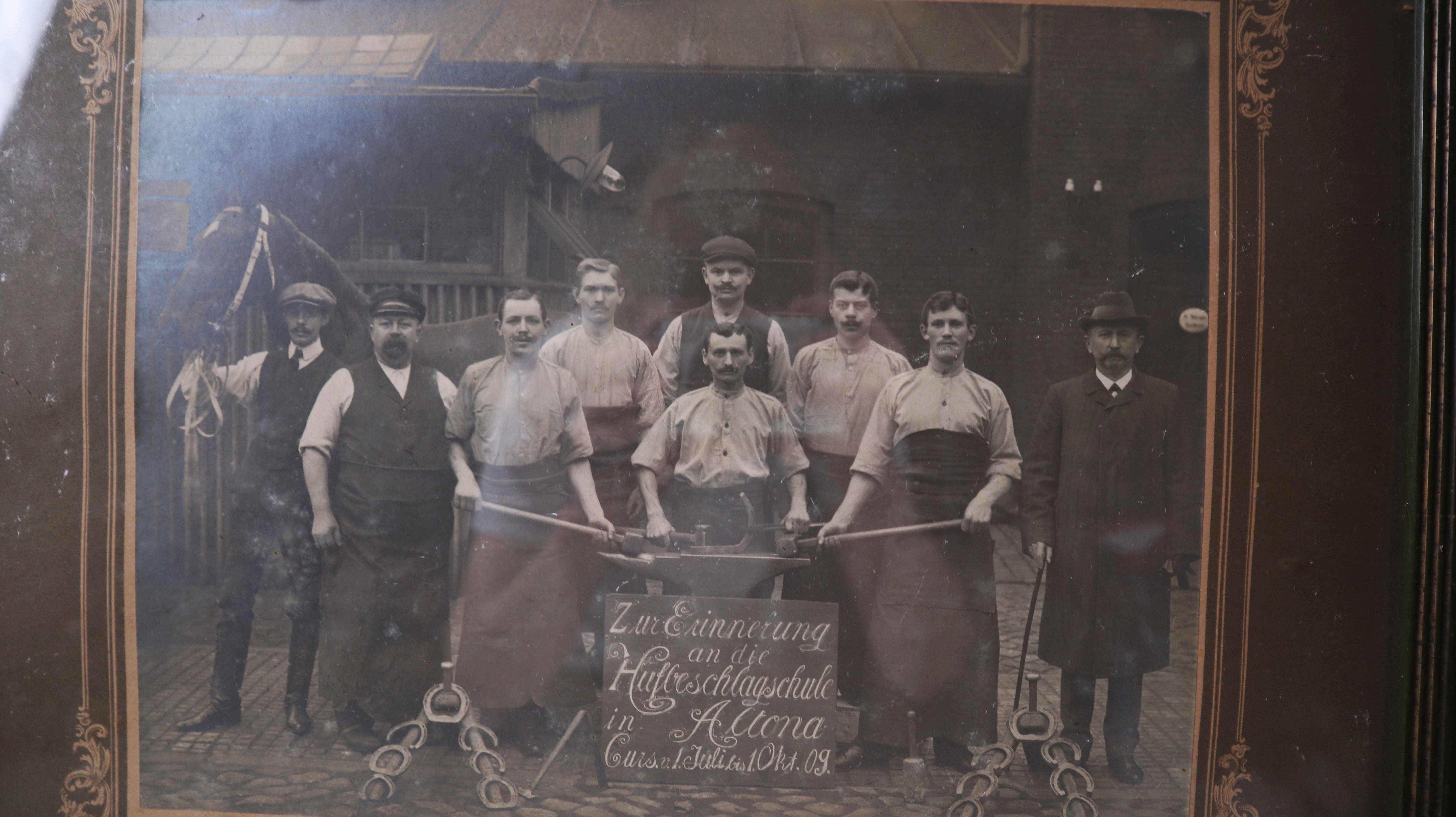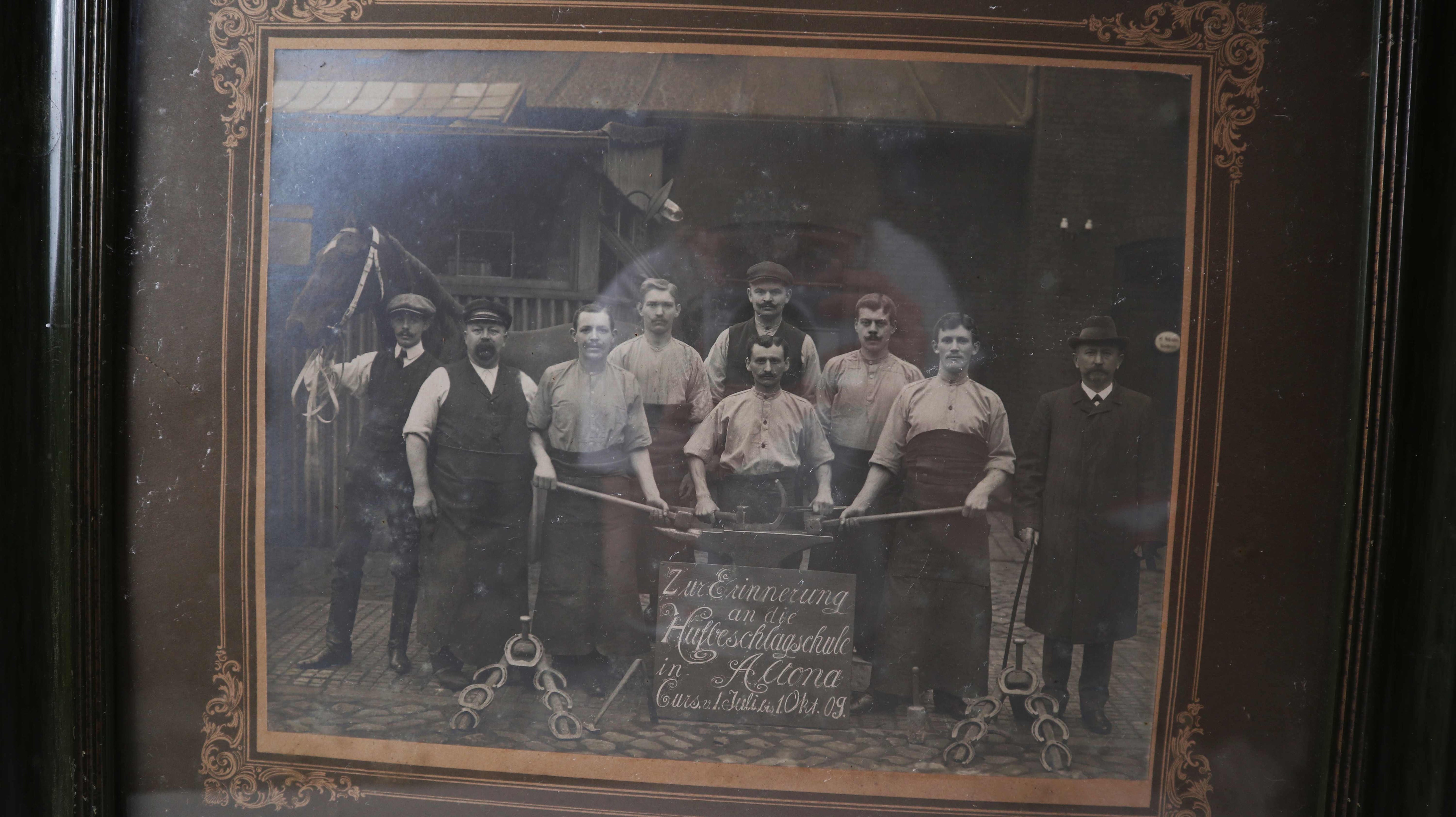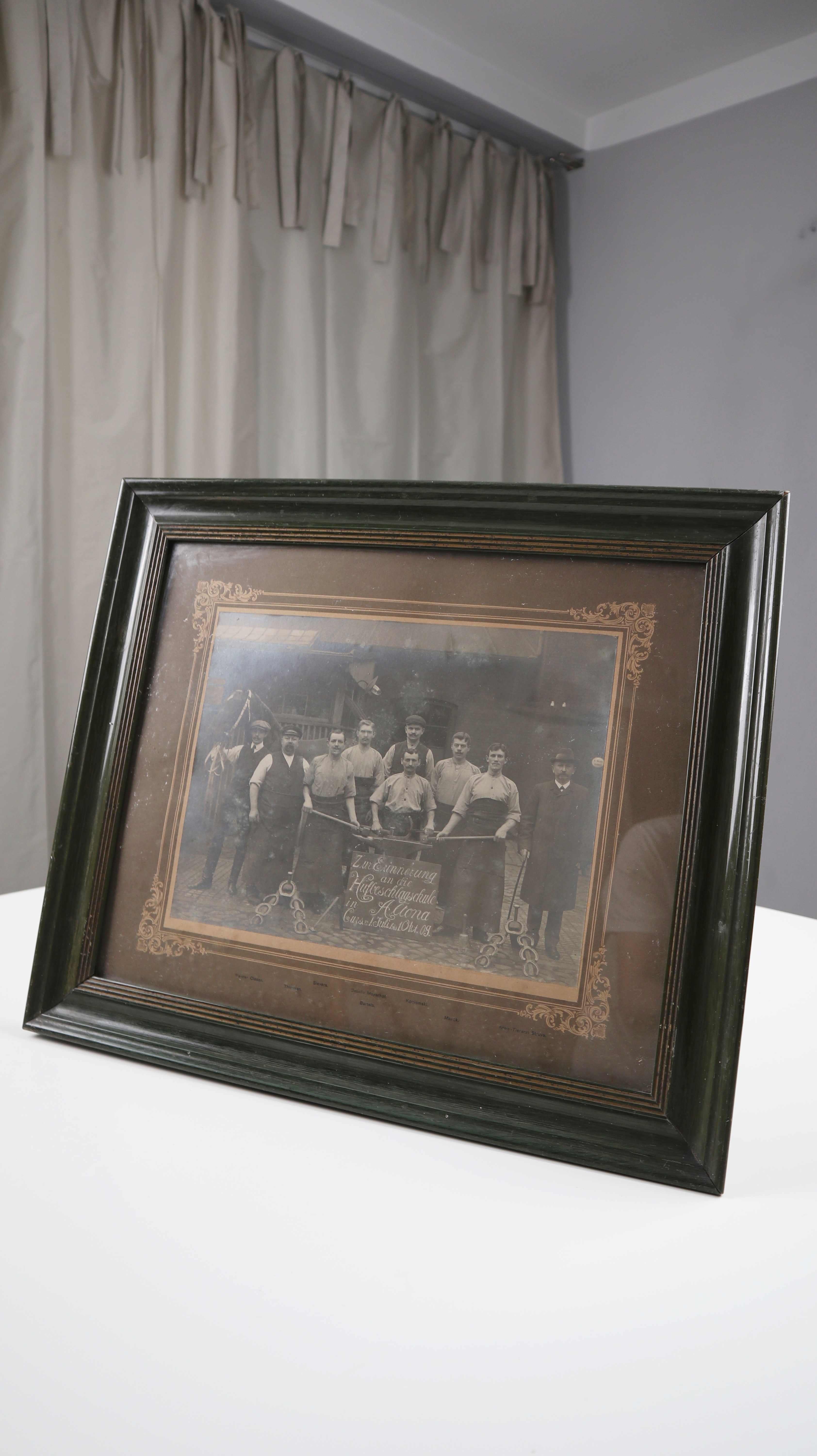 Antikes Bild Fotografie gerahmt grün Hufschmied Altona