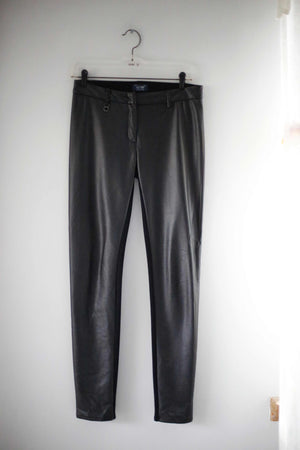 Armani Hose schwarz Kunstleder 38 M Röhrnehose Leggings slim