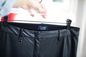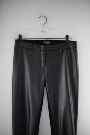 Schwarze Hose aus Kunstleder von Armani Jeans in 38 M. 37 cm Bundweite, 21 cm Schritthöhe und 73 cm Innenbeinlänge. Plus Versand