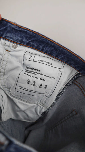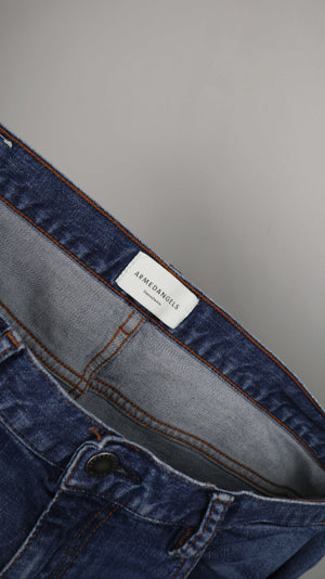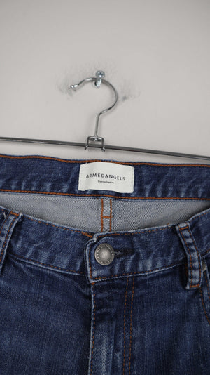 Blaue Jeans von Armedangels in Größe 30. Sie passt einer 40 L. 44 cm Bundweite, 26 cm Schritthöhe und 69 cm Innenbeinlänge. Plus Versand