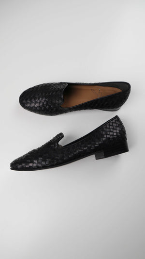 Badi Jiove Loafer Ballerinas 39 Schwarz geflochten Mokassins