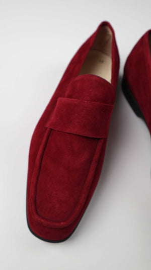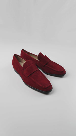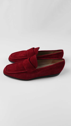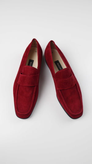 Bally Slipper Mokassins neu rot Wildleder 40 Made in Italy Plume Loafer Weinrot dunkelrot
