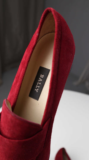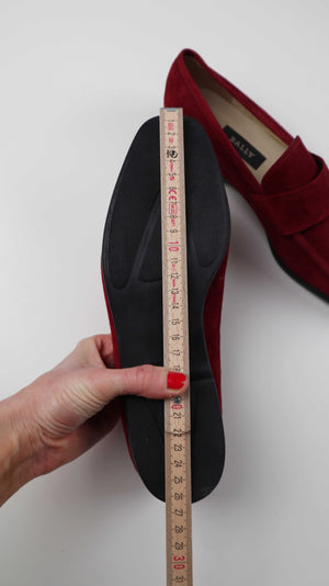 Neue, weinrote Slipper von Bally in Größe 40. Sie sind aus Wildleder. Plus Versand