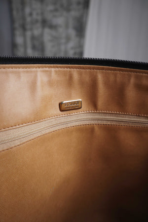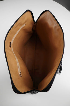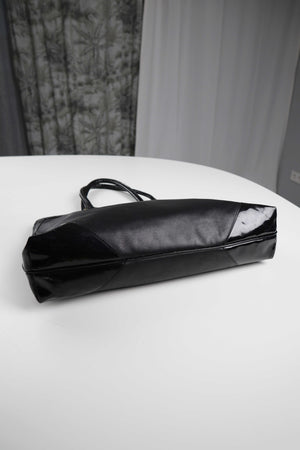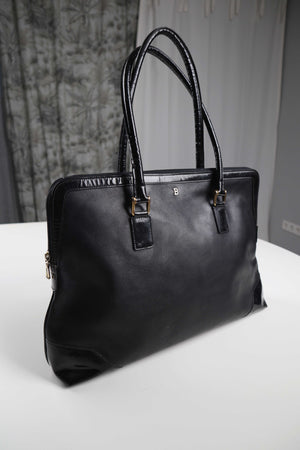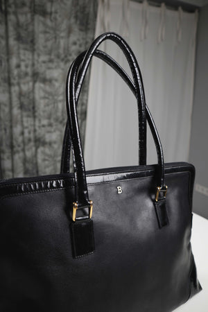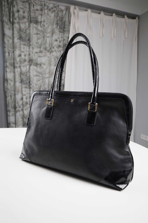 Schwarze Ledertasche mit Lackleder an den Ecken von Bally. 33 mal 41 cm. Plus Versand