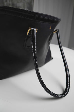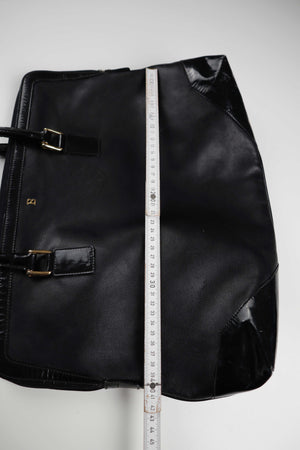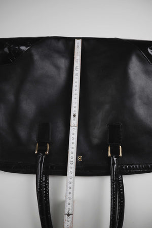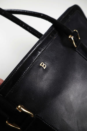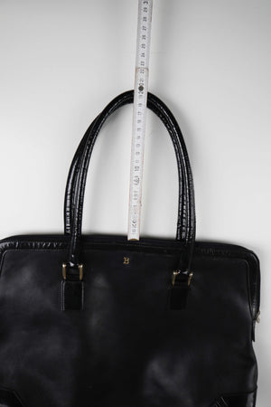 Bally Tasche Handtasche Schwarz true Vintage Leder Lackleder Schultertasche