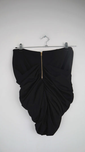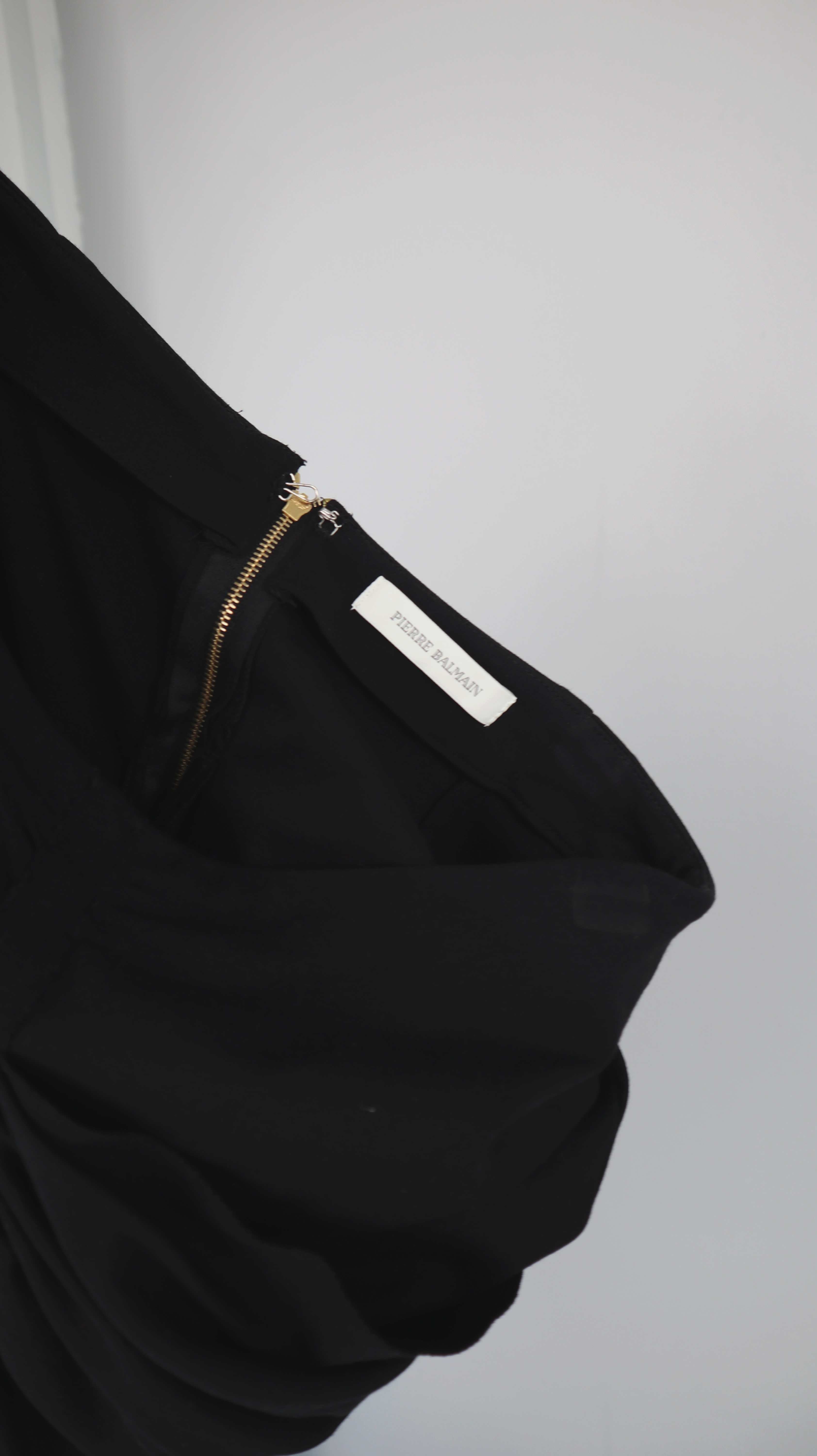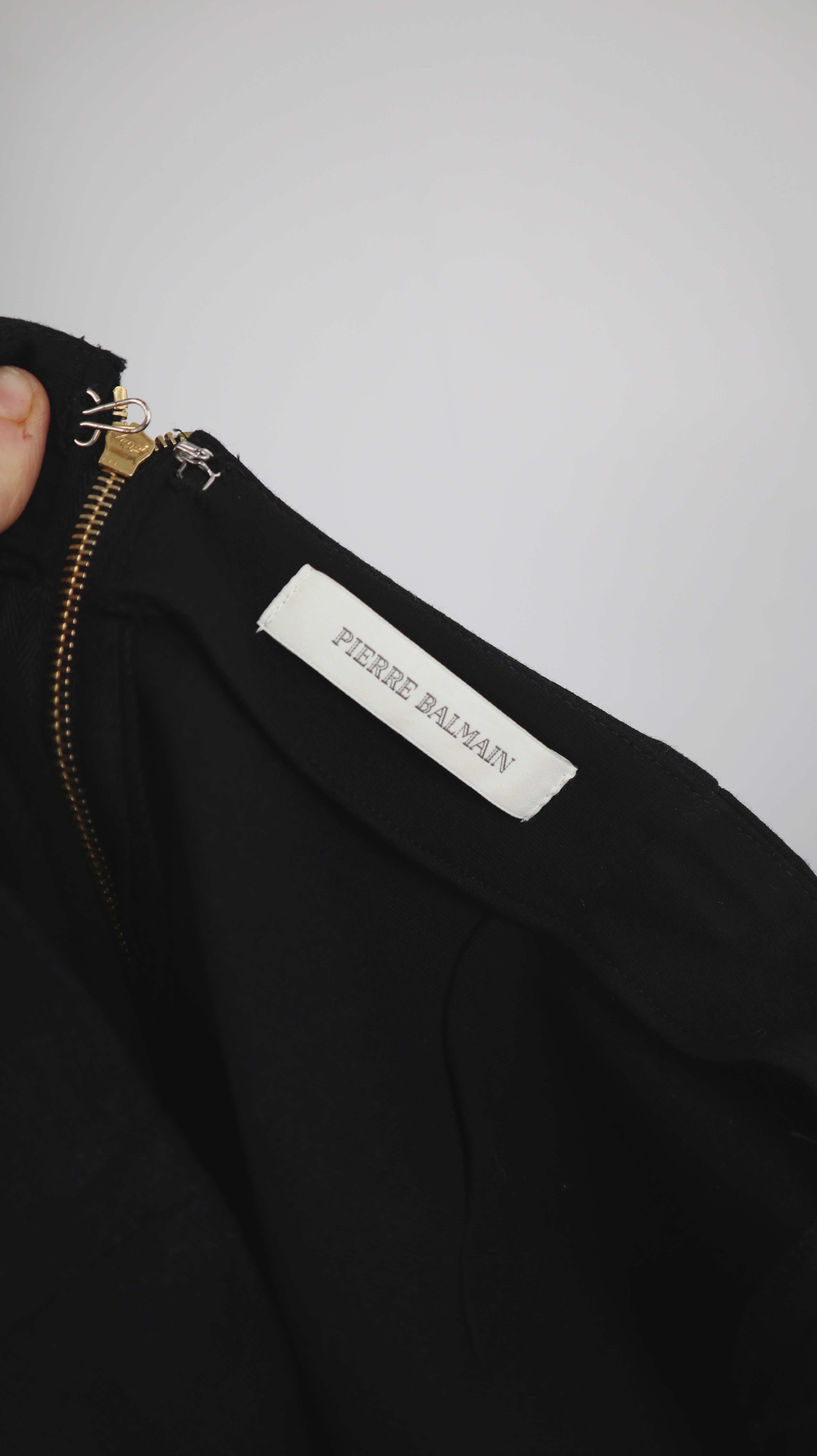 Enger schwarzer Rock aus Stoff von Balmain. Er passt einer 36 S und hat hinten einen Reißverschluss. 40 cm Bundweite, 48 cm Länge. Plus Versand