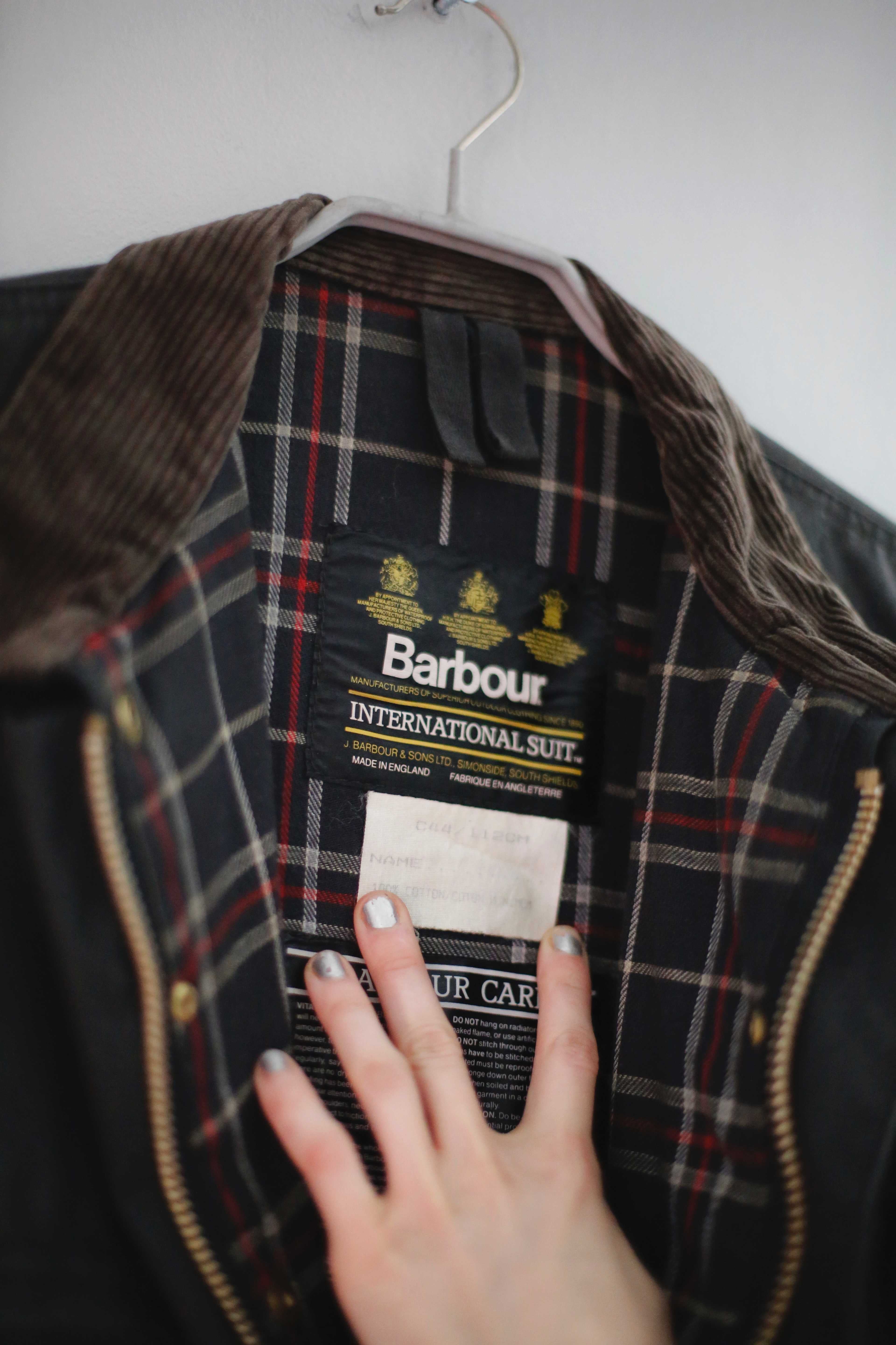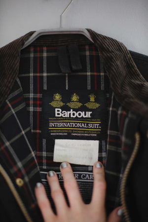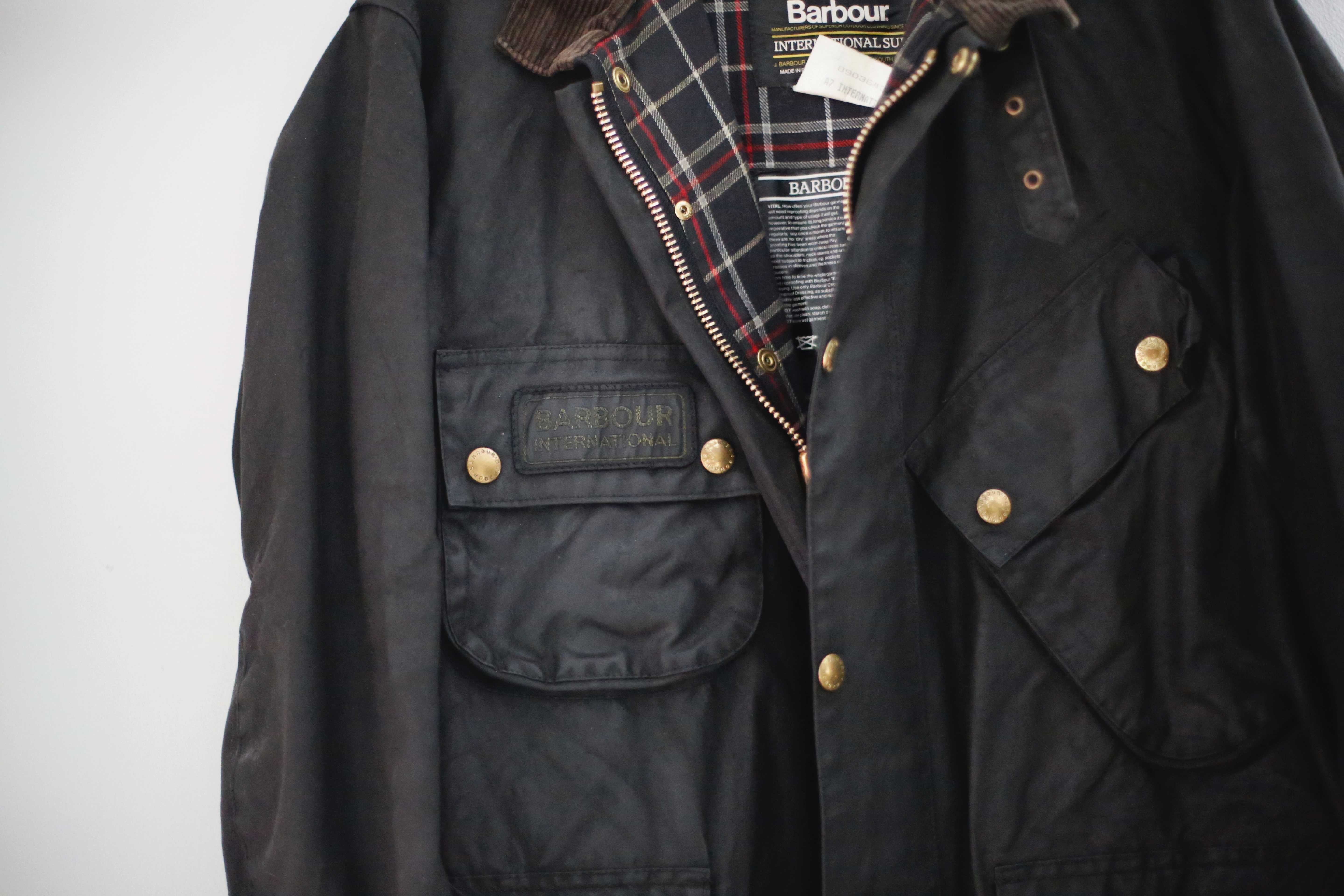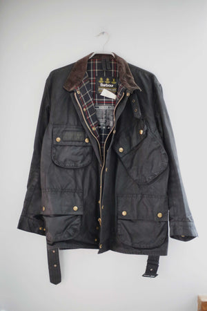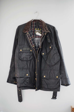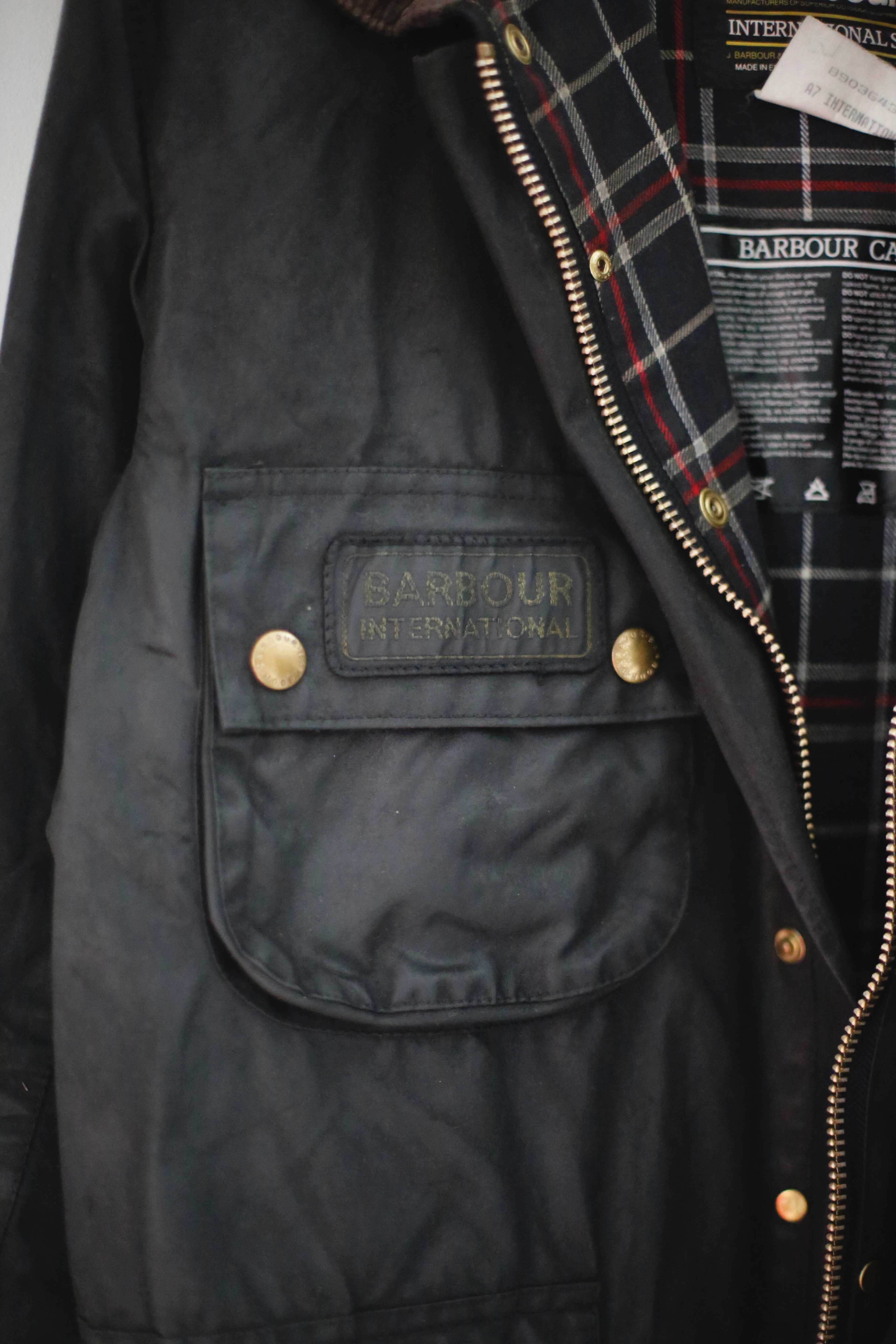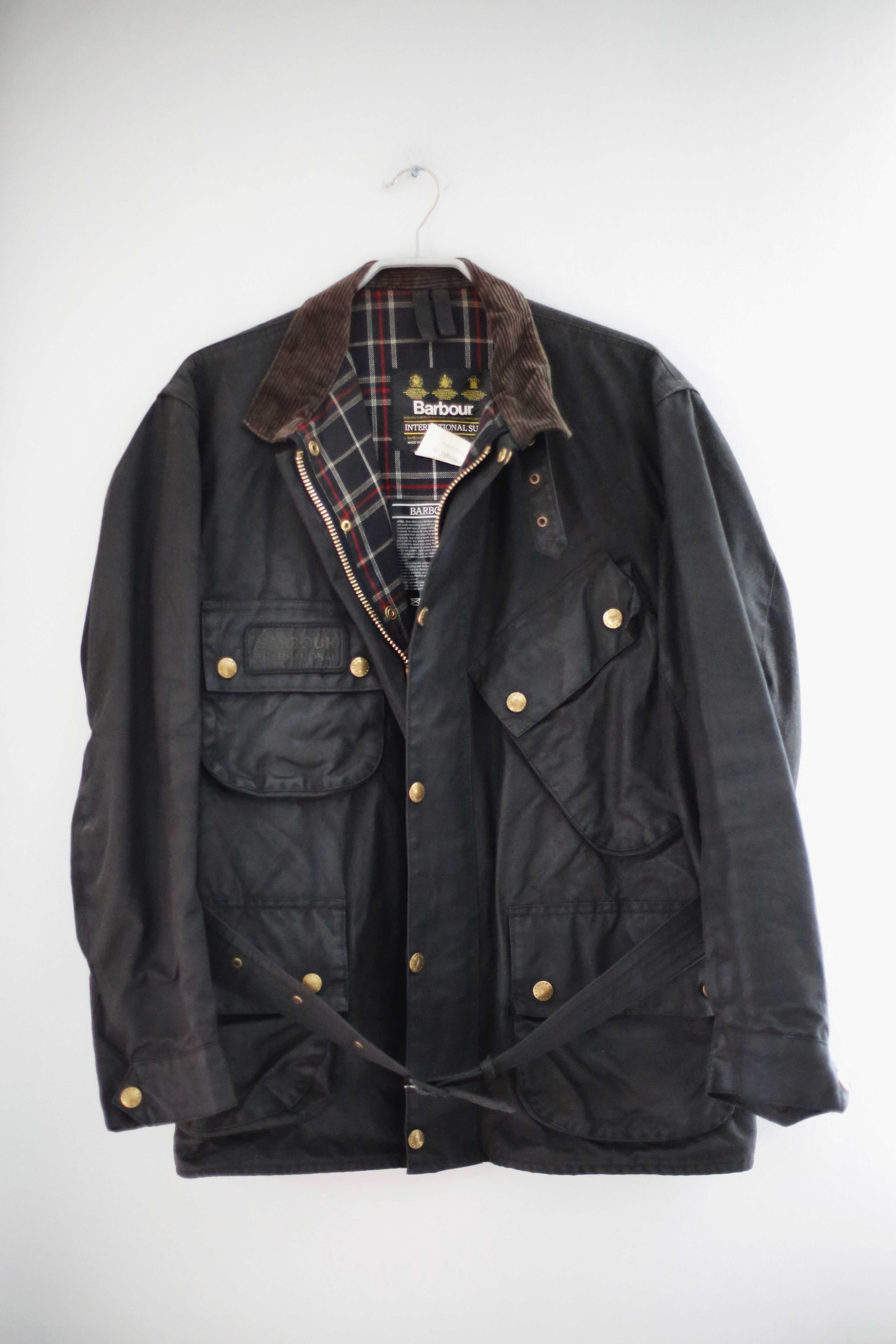 Barbour International Jacke C44 Wachsjacke Grün Khaki Gurt 112 CM Regenjacke