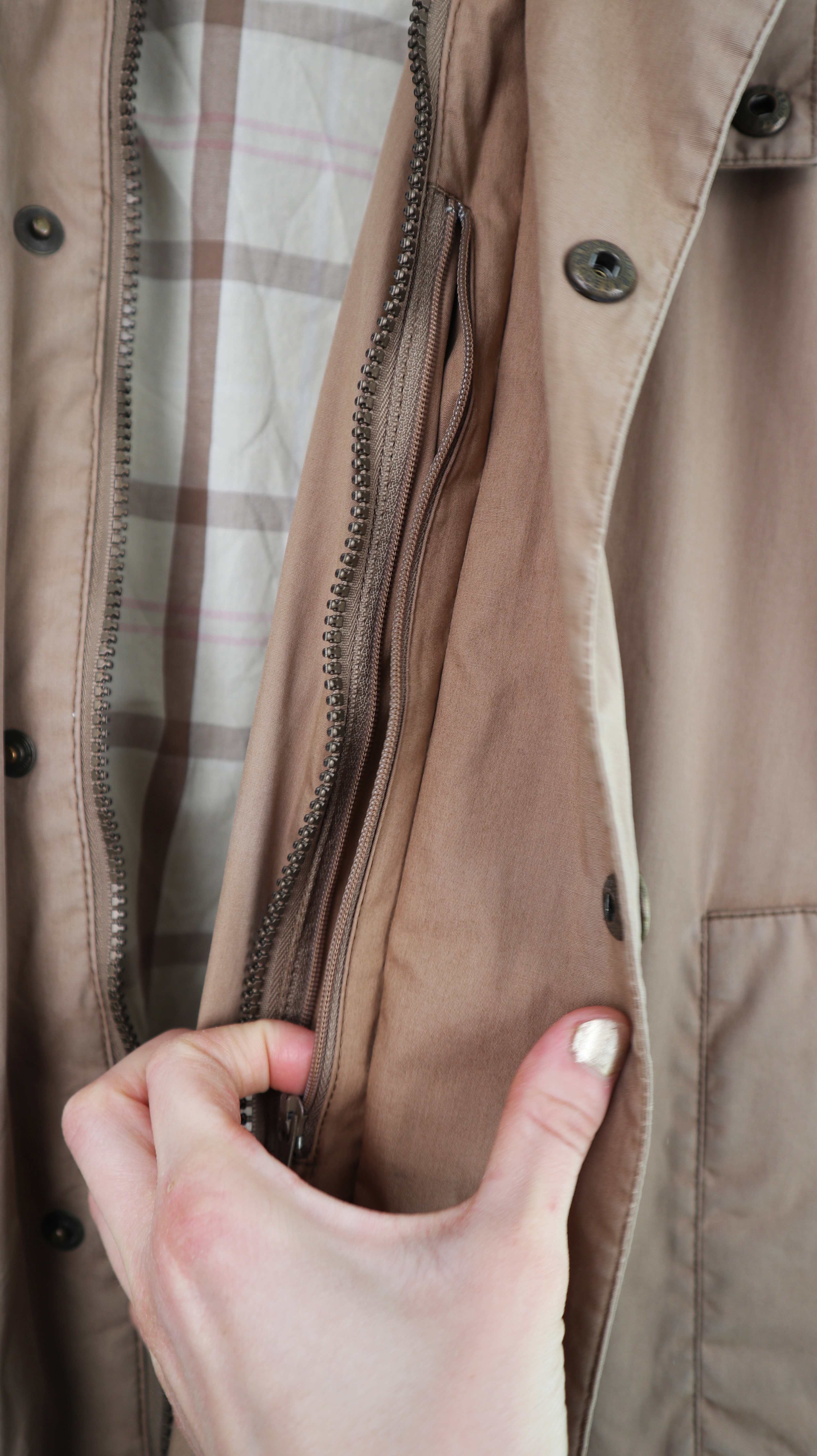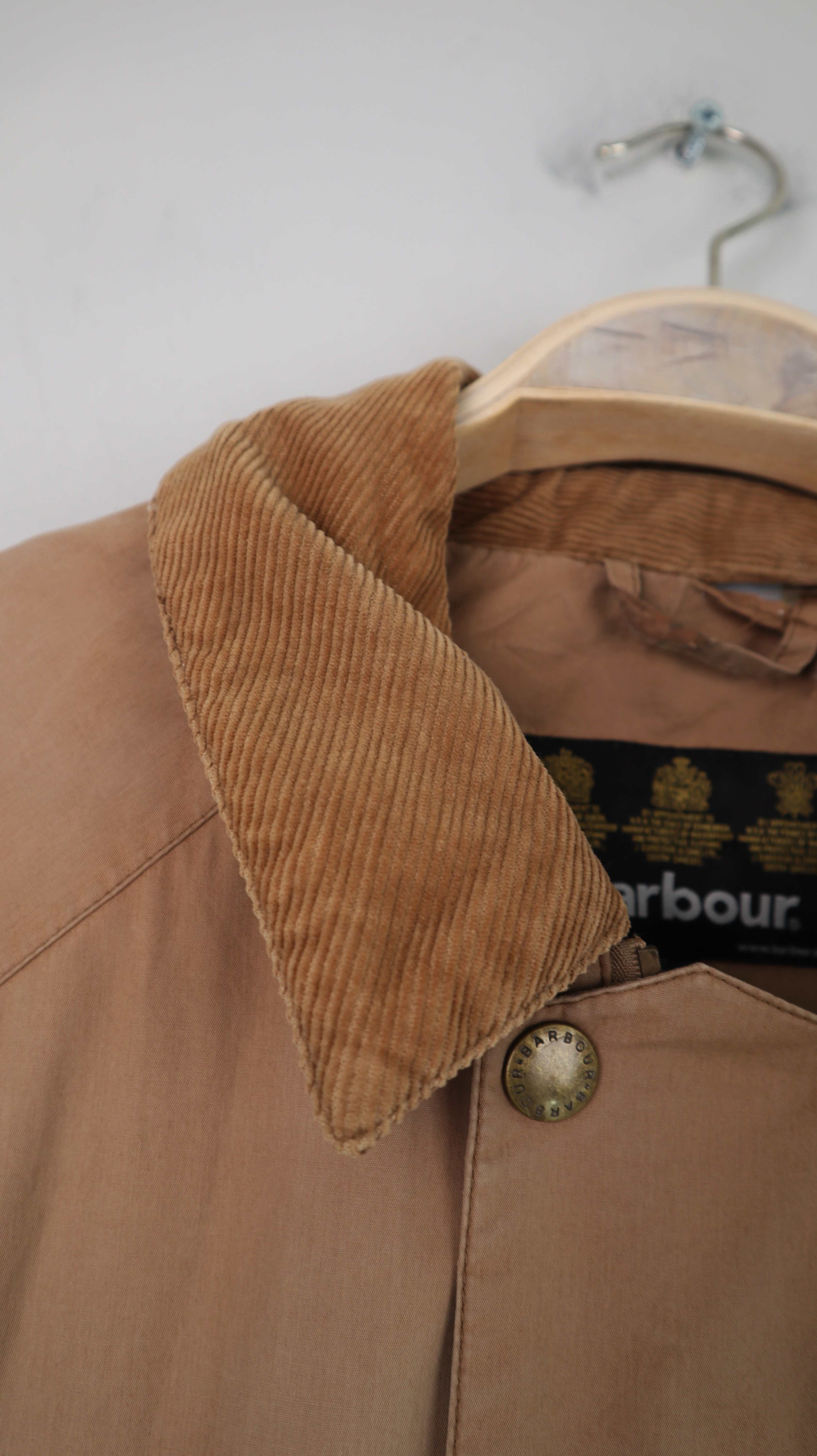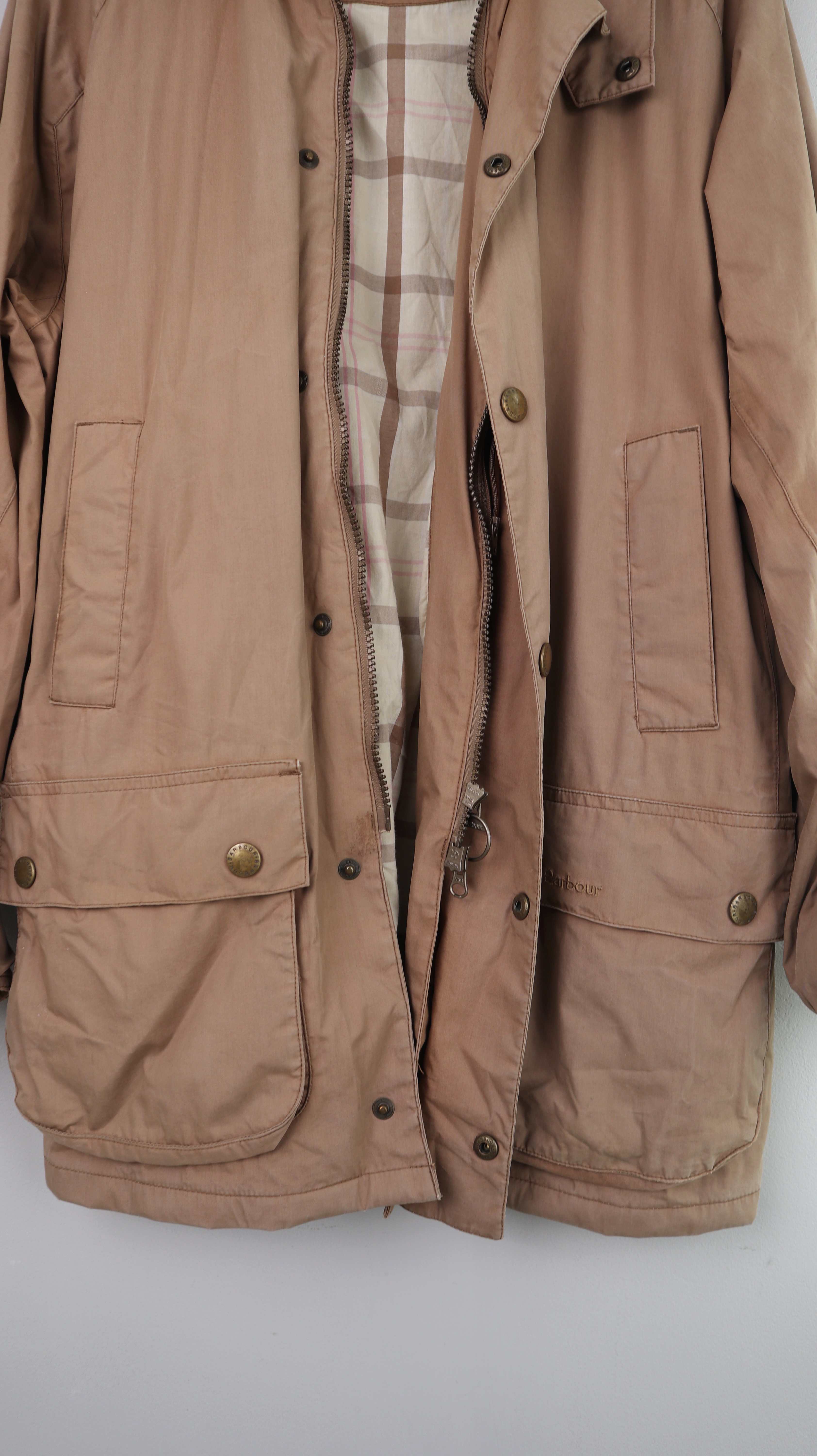Hellbraune Jacke von Barbour in einer L. 51 cm Achselweite und 83 cm Länge. Plus Versand