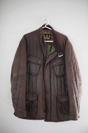 Barbour Steppjacke Braun Wachsjacke XXL gesteppt gewachst Dunkelbraun Regenjacke