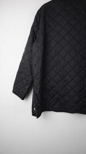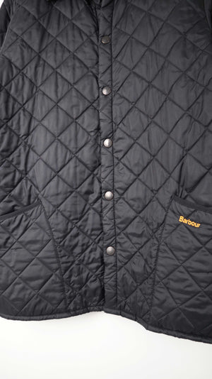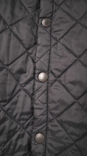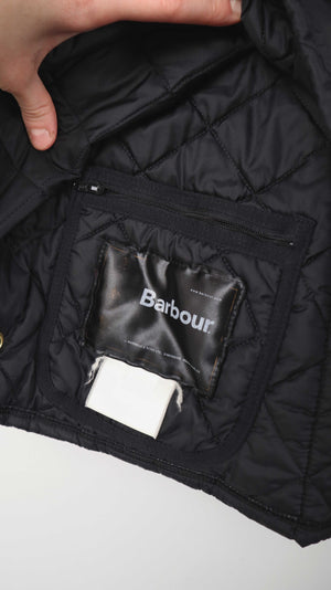 Schwarze Steppjacke von Barbour. Sie passt einer L. 56 cm Achselweite und 83 cm Länge. Plus Versand