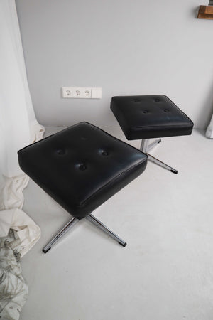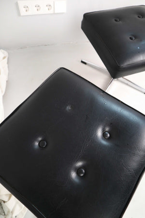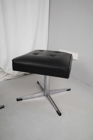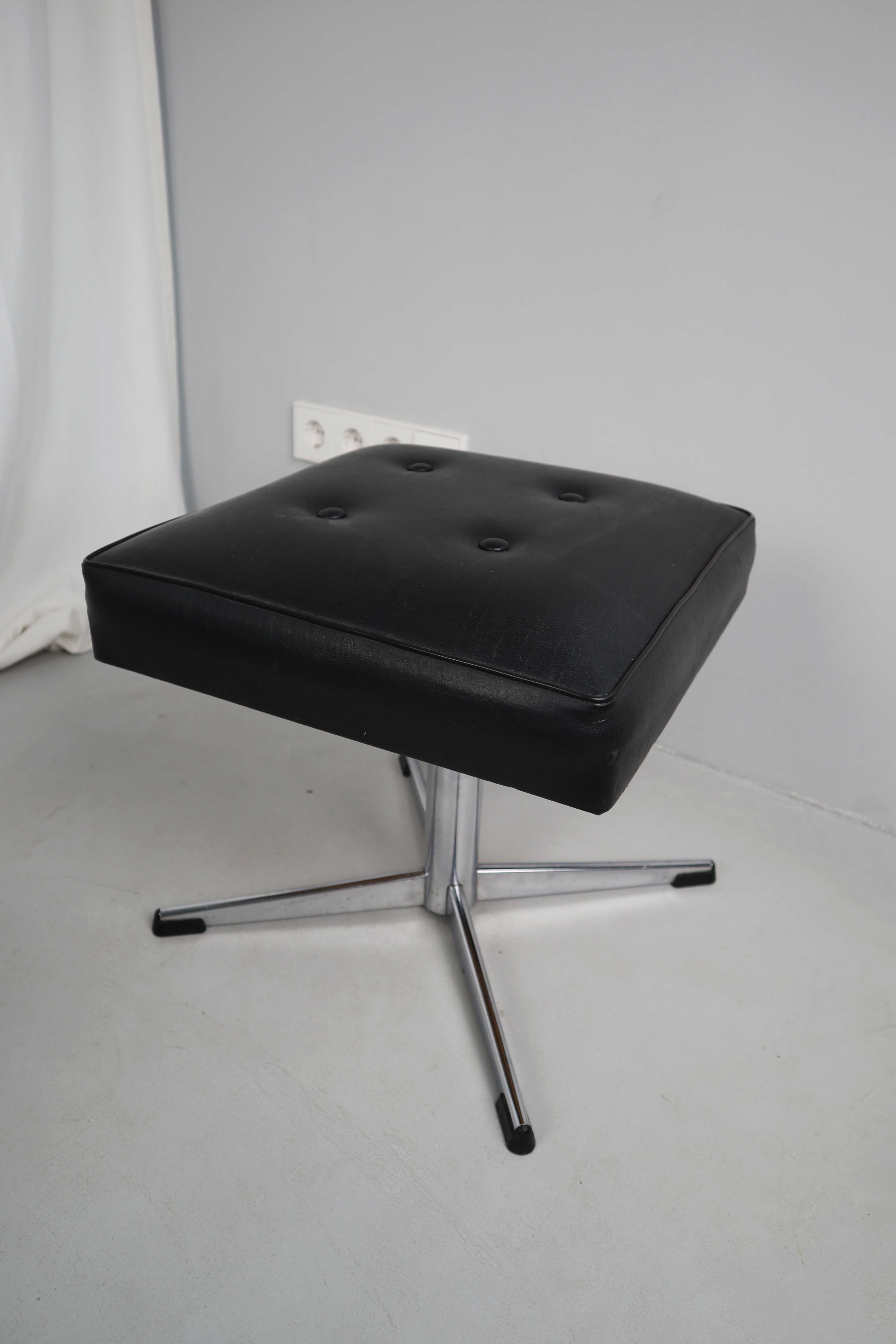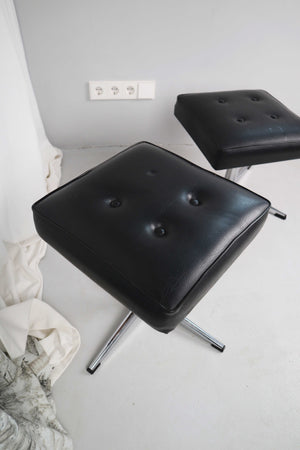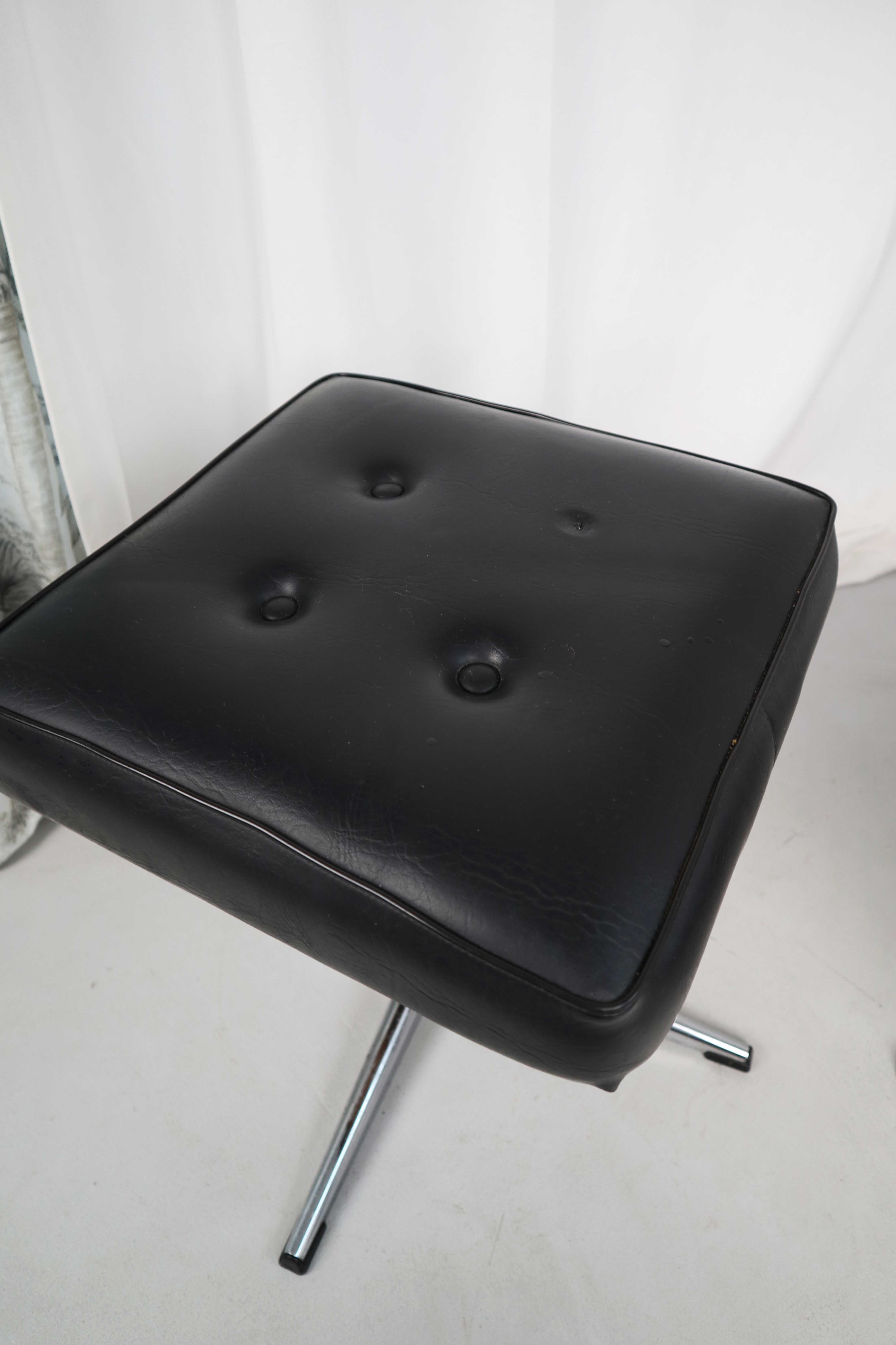 Beistellhocker Hocker Vintage Ottomane schwarz Drehhocker Chrom Set