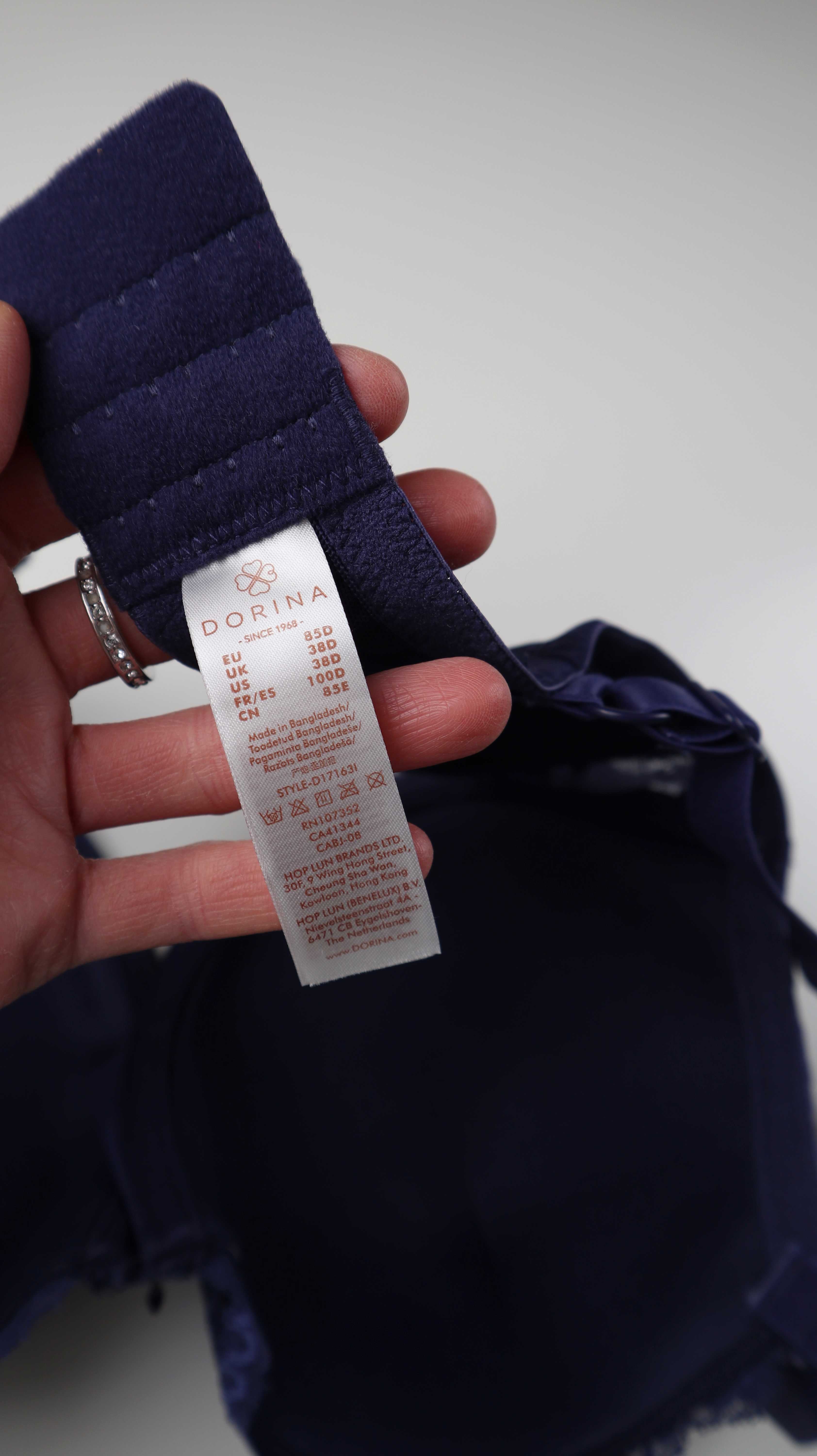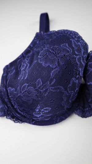 Dunkelblauer BH mit Spitze. Er passt einer 75D. Plus Versand
