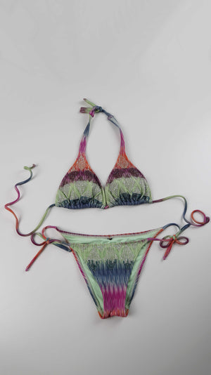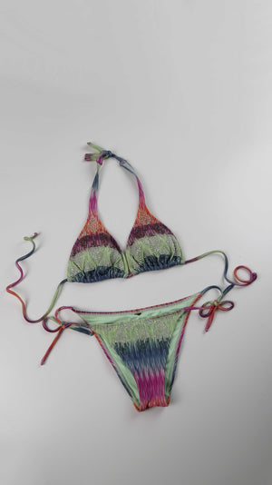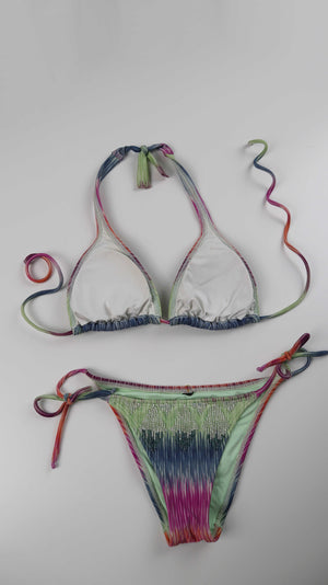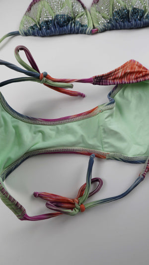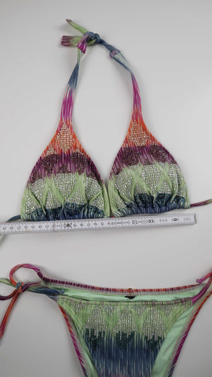 Bikini Badeanzug Grün Bestickt 36 S Batik Neckholder perlenbestickt