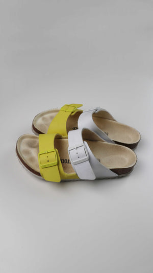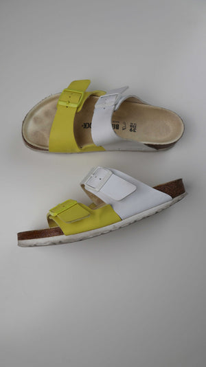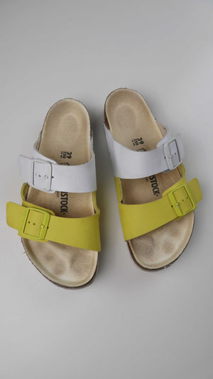 Birkenstock Damen Arizona 39 Gelb weiß Sandalen Slipper