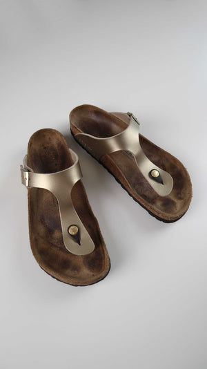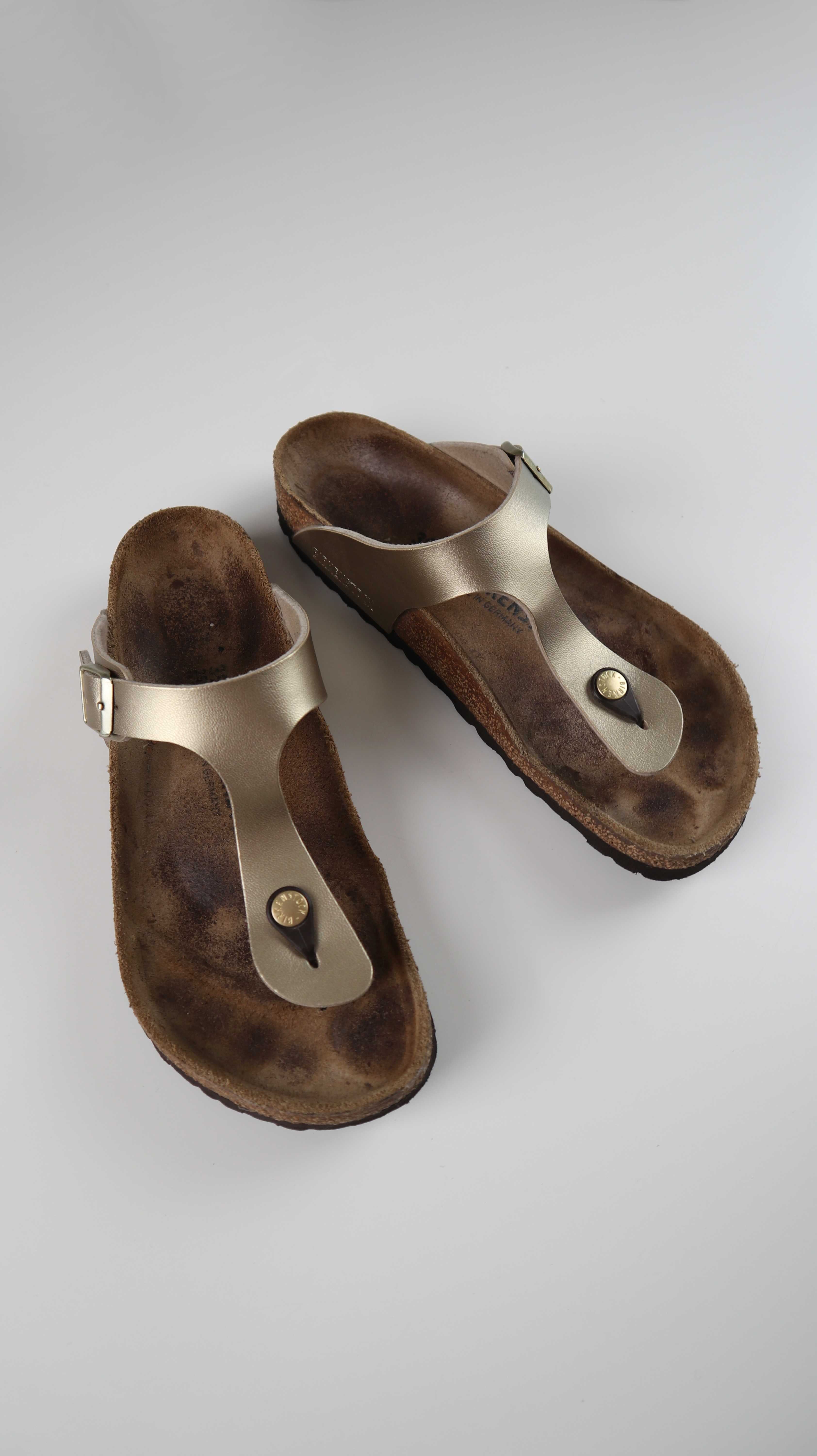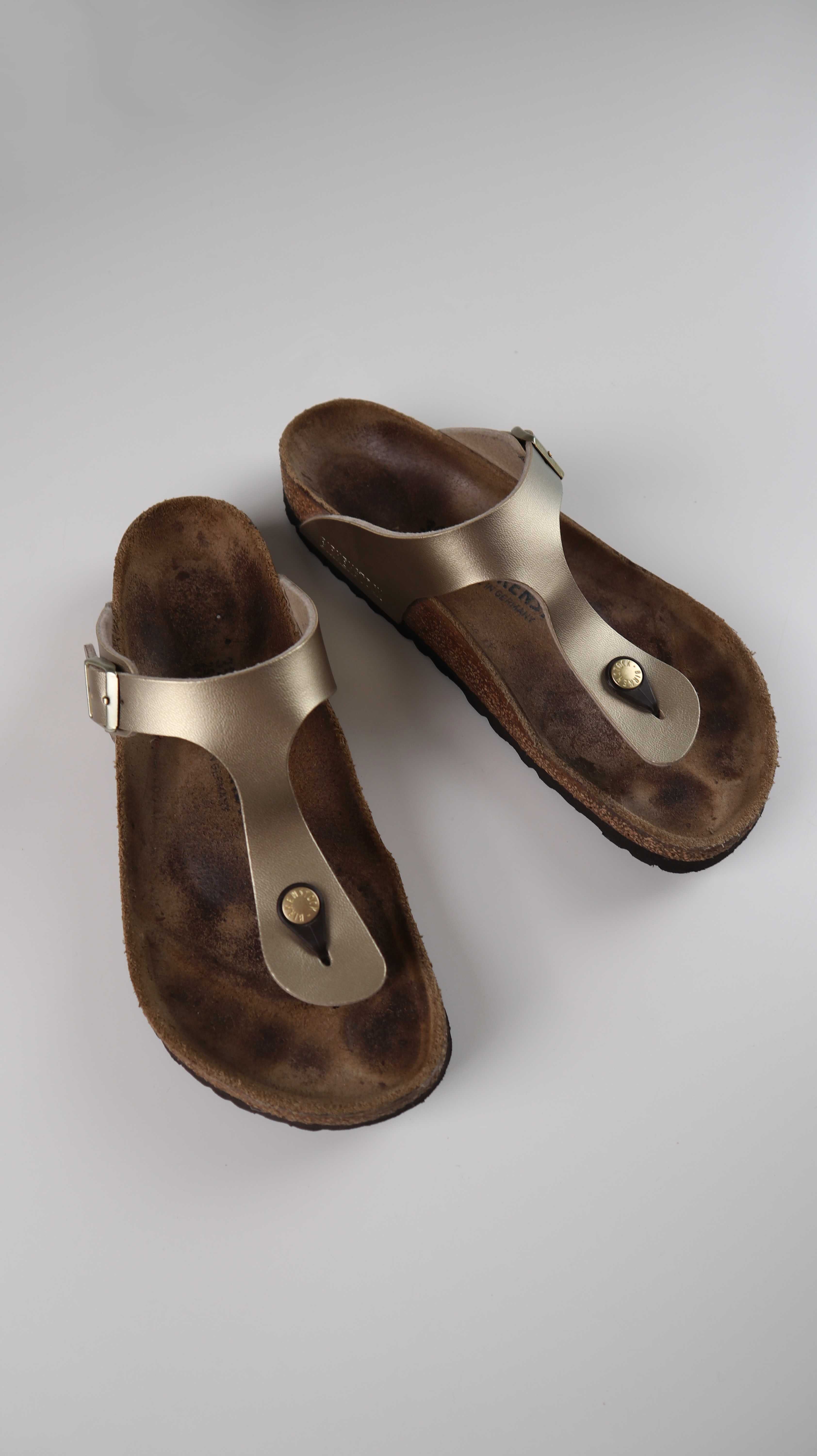Birkenstock Gizeh Gold 39 Sandalen Loafer Slipper Metallic