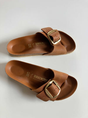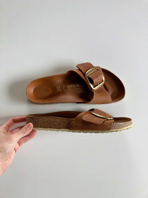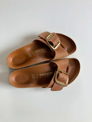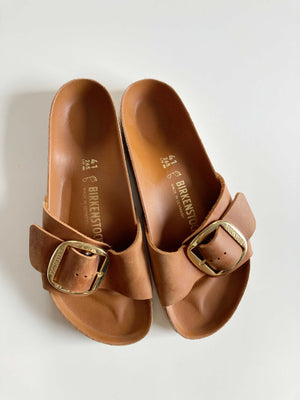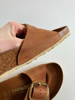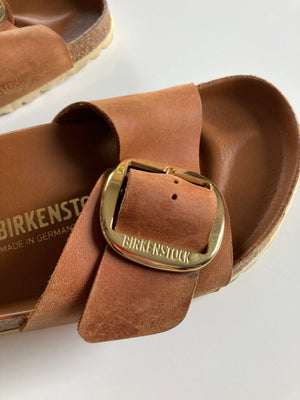Birkenstock Slipper Sandalen Braun Leder Schnalle 41 Gold Madrid Big