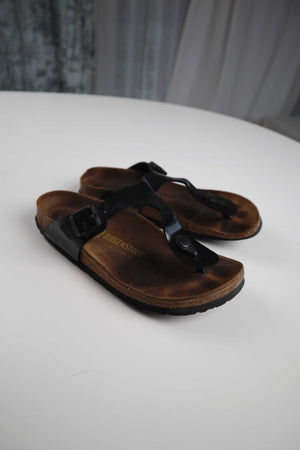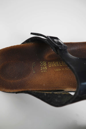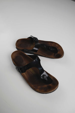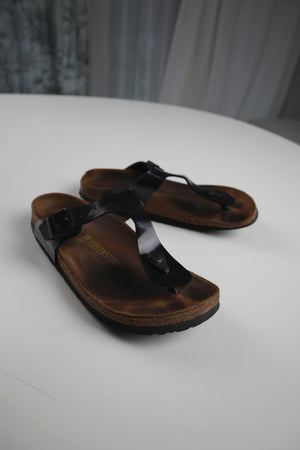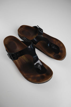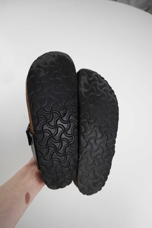 Schwarze Birkenstocks in 38, Lackleder, getragen, Gizeh. Plus Versand