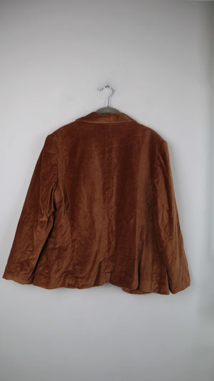 Brauner Samtblazer, ohne Marke. Er passt einer 40 L. 45 cm Achselweite und 61 cm Länge. Plus Versand