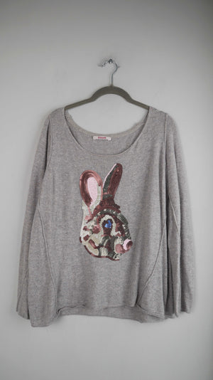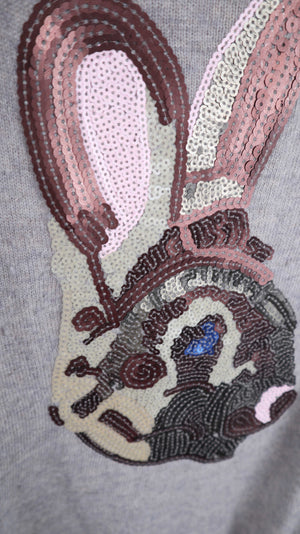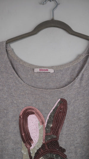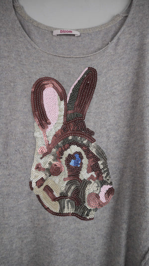Bloom Pullover Hase 40 L Pailetten Sweater grau bestickt