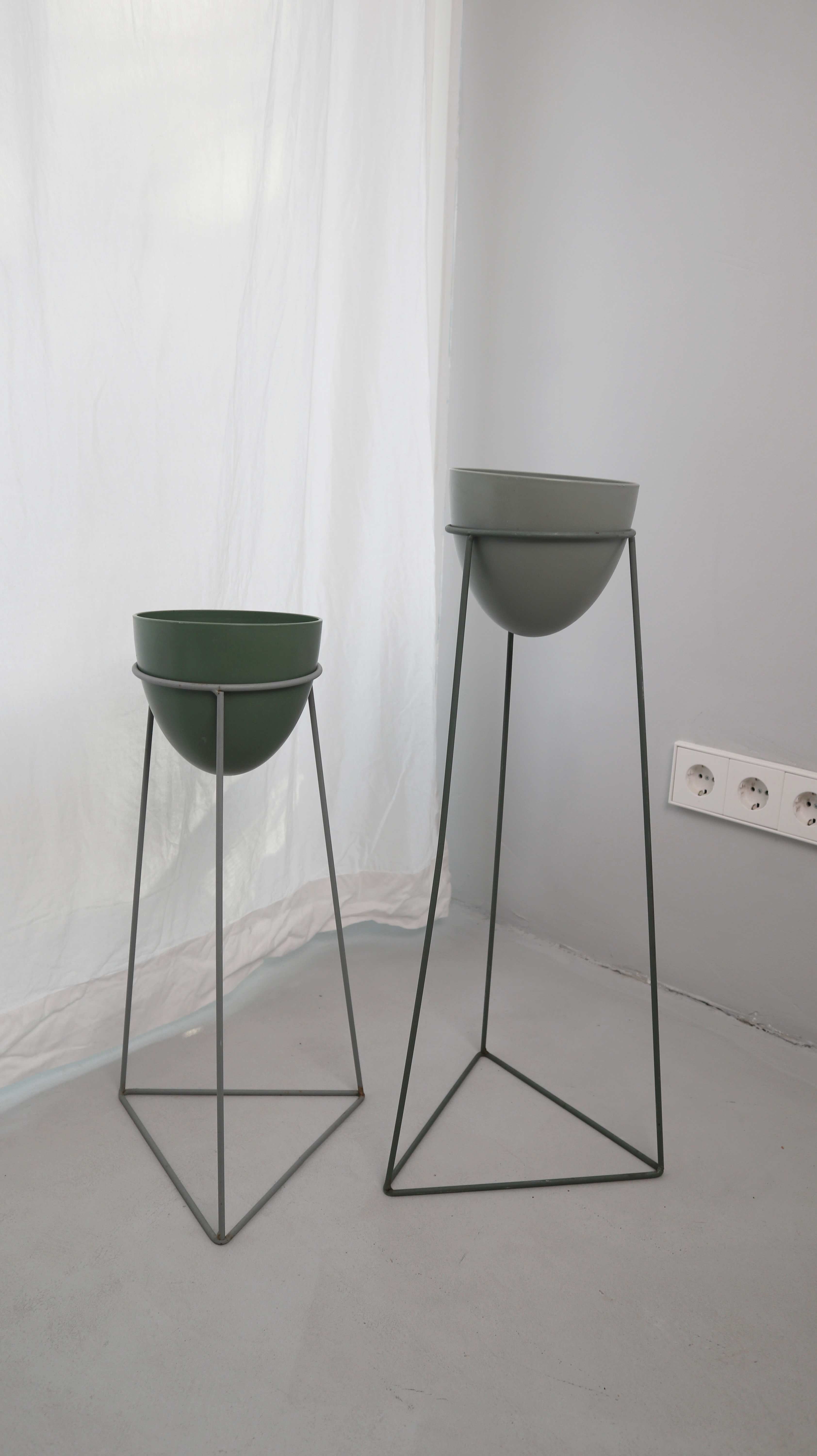 Blumenständer Blumenhalter Zwei Grün Geometrisch Blumentopf Set Metall Metallhalter