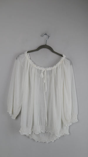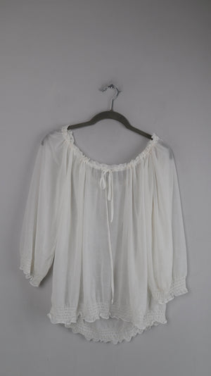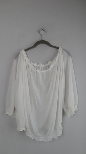 Bluse weiß Carmenbluse transparent 38 M 40 L