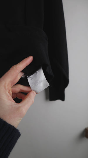 Schwarzer Pullover von Bode in 38 M. Leider hat er ein kleines Löchlein und ist anteilig mit Wolle und Acryl. 58 cm Achselweite und 56 cm Länge. Plus Versand