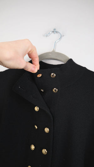 Bode Pullover schwarz 38 M true Vintage geknöpft Wolle Wollpullover